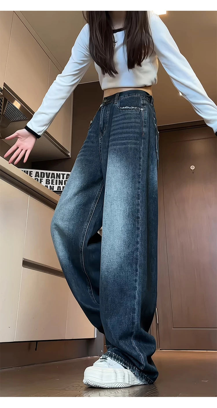 Jeans women's loose straight spring and autumn 2025 new large size American casual retro all-match wide-leg trousers trend