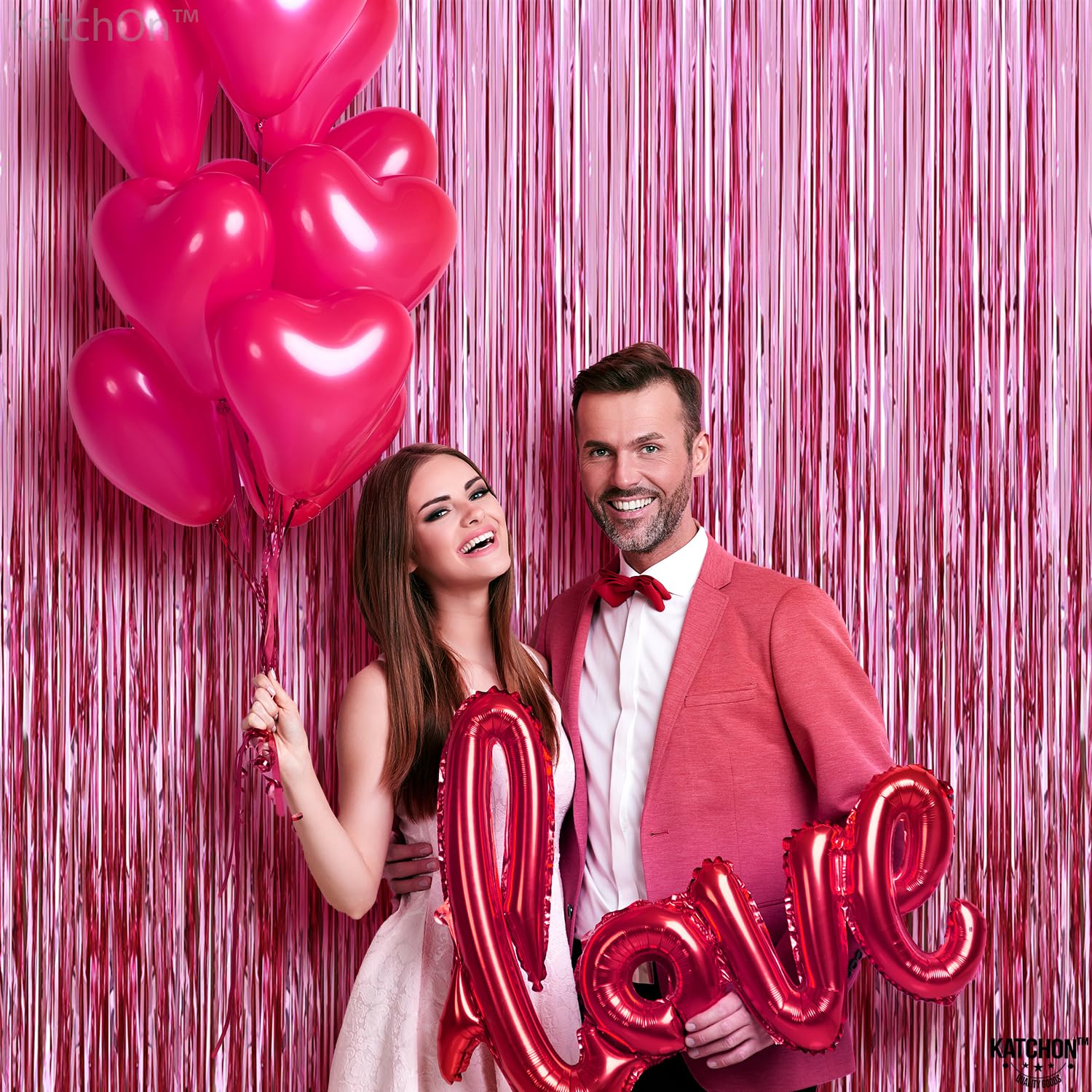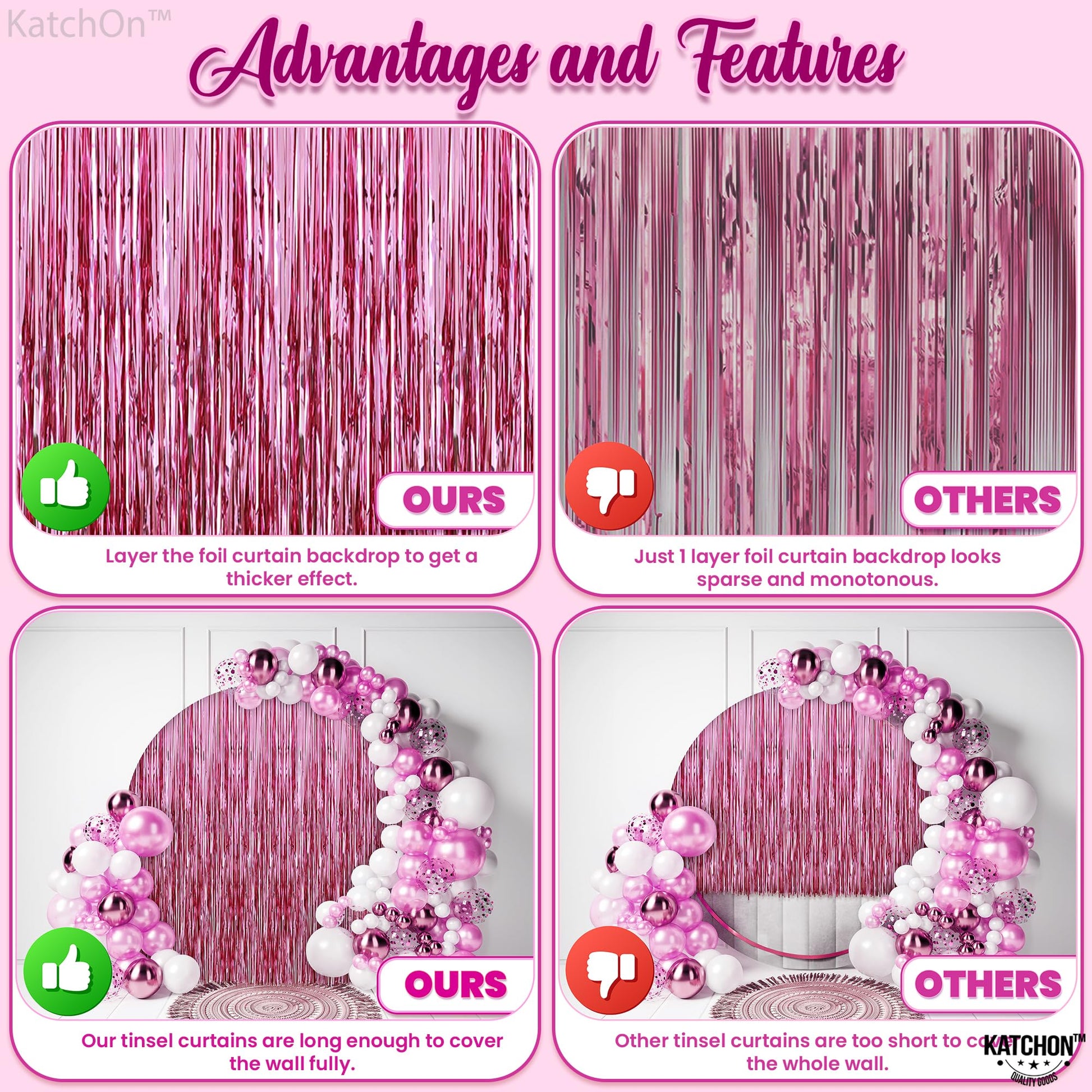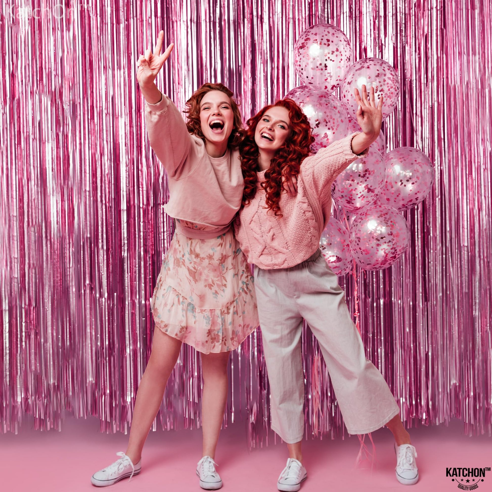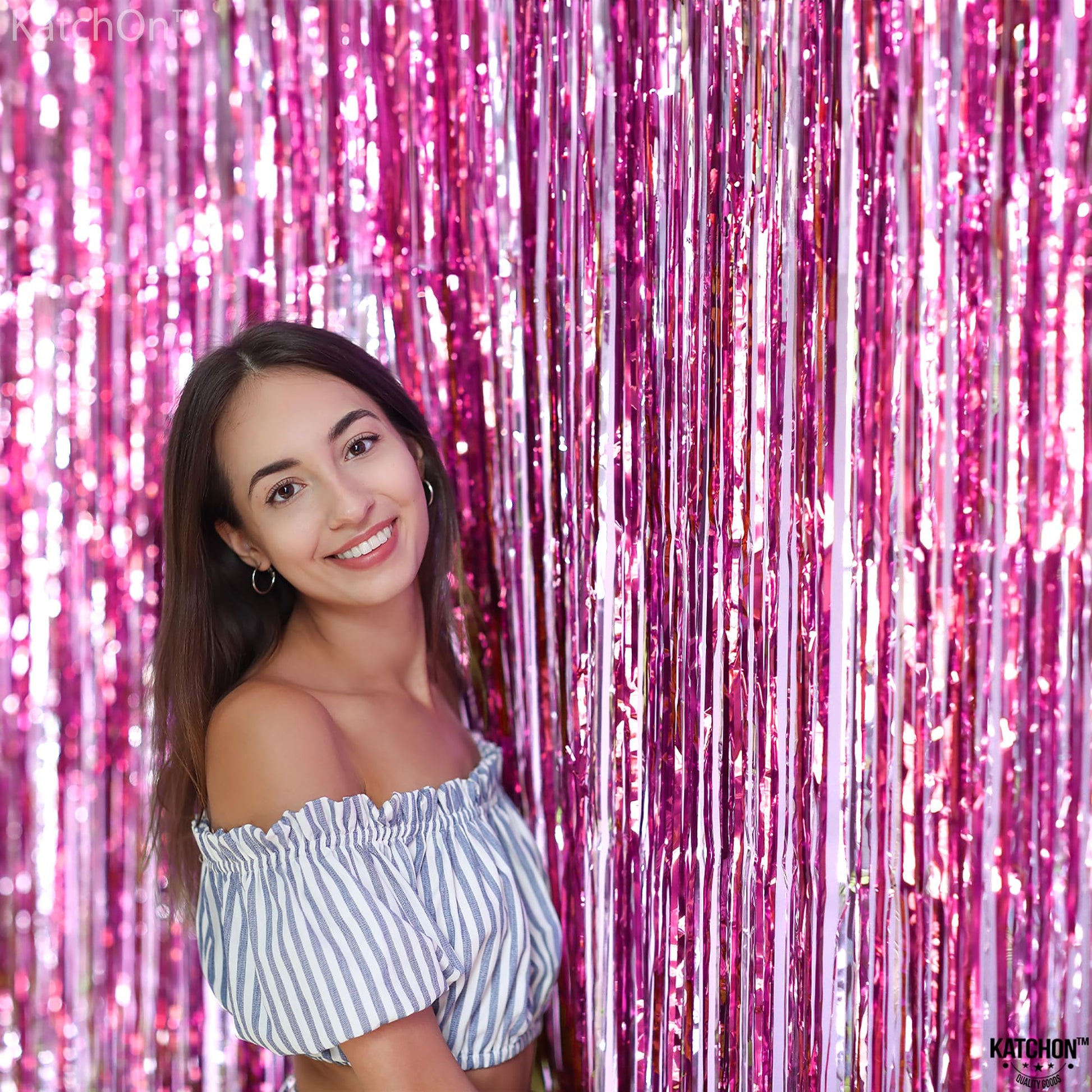 KatchOn, Pink Backdrop for Pink Party Decorations - XtraLarge 8x3.2 Feet, Pack of 2 | Pink Foil Fringe Curtain for Pink Streamers Party Decorations | Pink Fringe Backdrop, Galentines Day DecorationsBrand: KatchOn