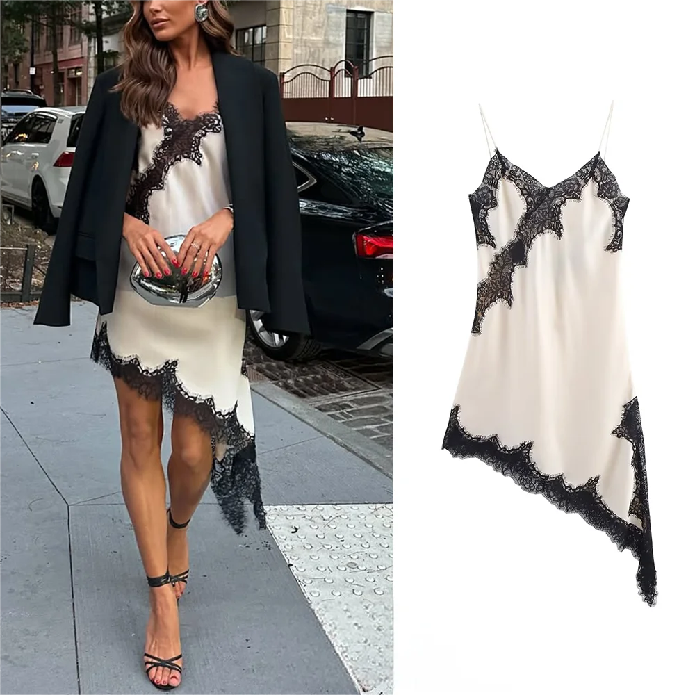KONDALA Sexy Chic Black Lace Cami Tops Women V Neck Patchwork Sleeveless Y2K Girl Top Fashion 2025 Summer Fall Holiday Beach Top