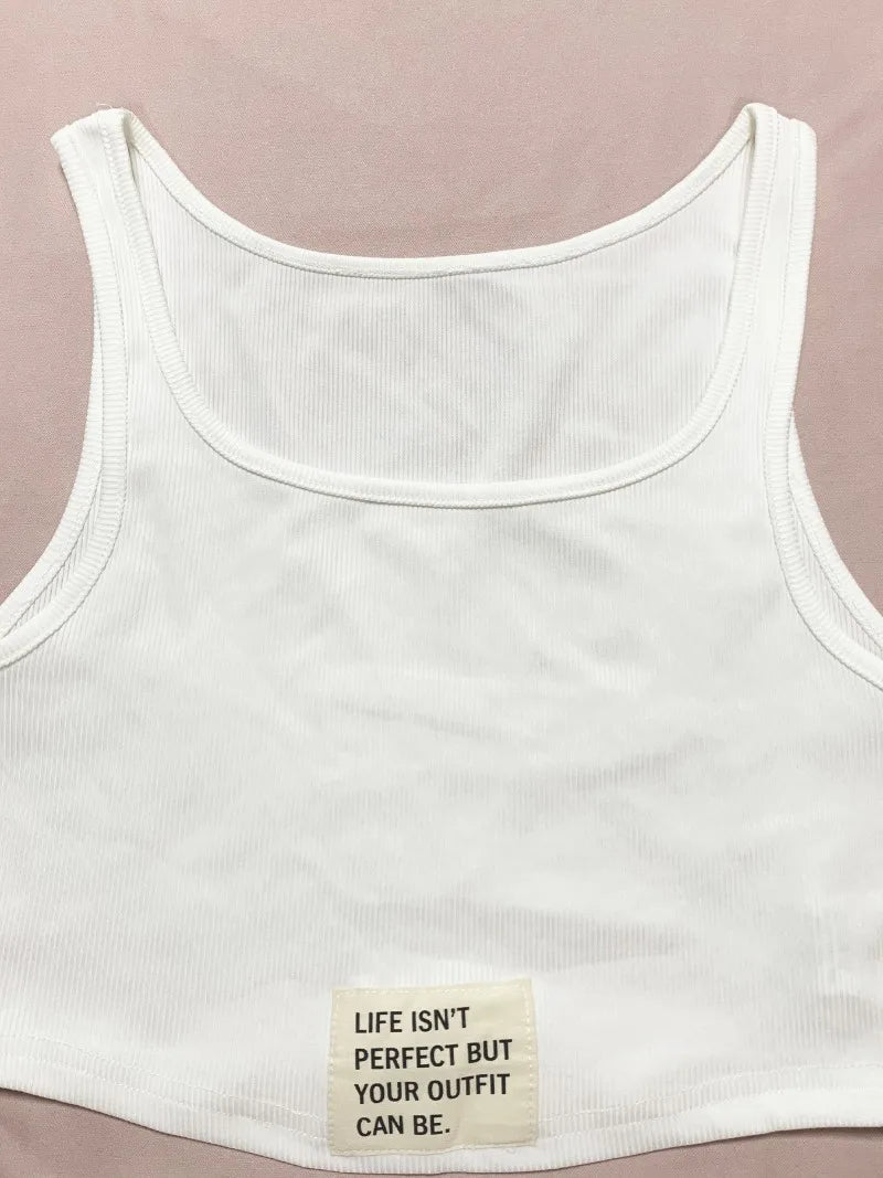 Letter Print Label Color Patchwork 2 Piece Set Women Tracksuits Ribbed Tank Crop Top + Drawstring High Waist Wide Leg Pants Suit