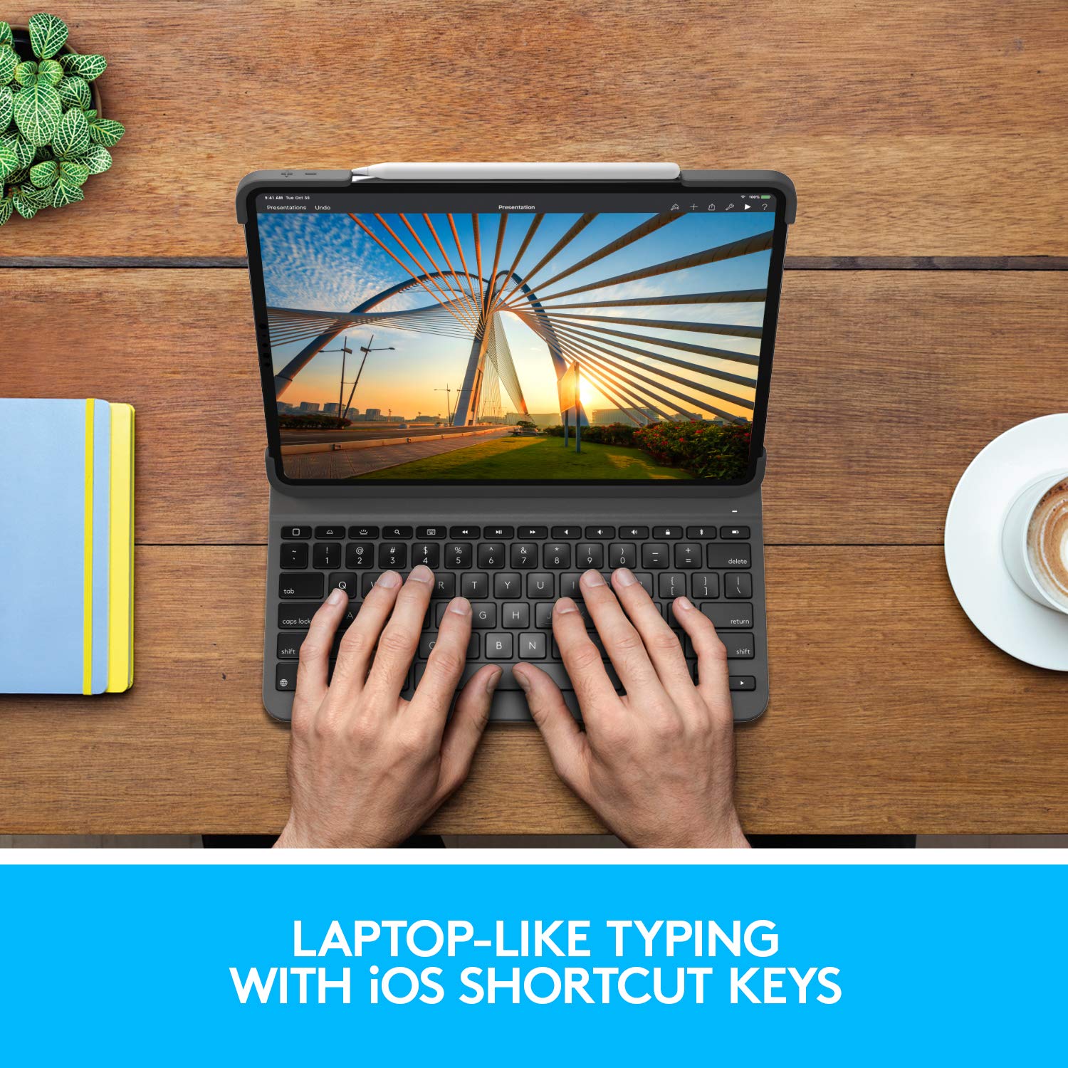 - LAPTOP-LIKE TYPING - Turn your iPad Pro 12.9-inch (3rd and 4th gen) into a laptop with Slim Folio Pro. Forget about cramped on-screen typing — now you can type quickly and accurately in comfort with a familiar laptop-like premium keyboard. With a full row of iOS shortcut keys and media controls you can optimize your productivity without leaving the keyboard.