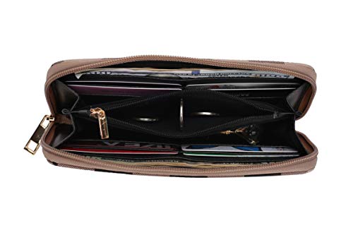 - STAY ORGANIZED: Keep your stuff organized Multi-pockets. Handbag interior features a spacious compartment with a wall zipper and two slip-in pockets. Exterior features two side pockets and back-zipper pocket for easy reach: Wristlet wallet features centered zipper pocket for coins, 2 bill compartments, and 8 card slots on both sides.