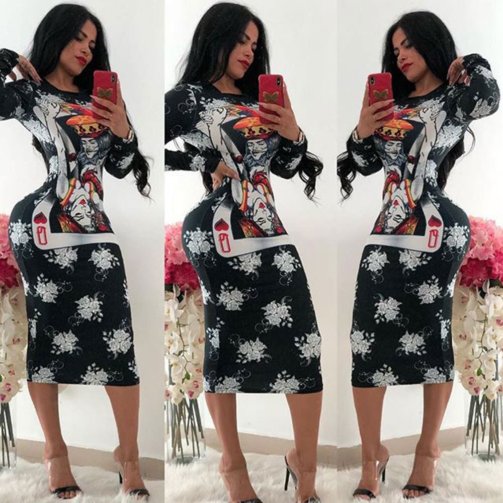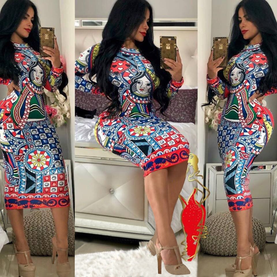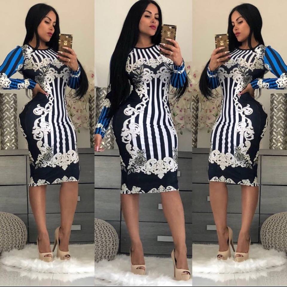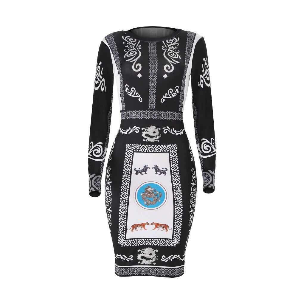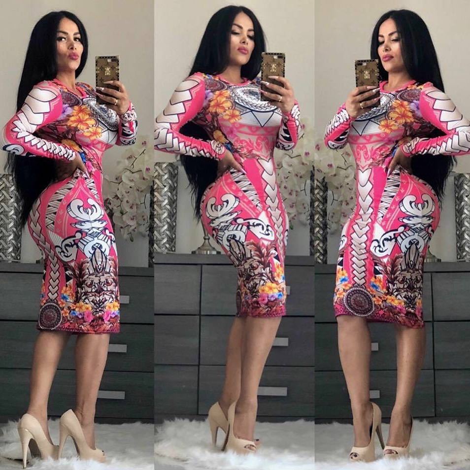 Multicolor Print Novelty Bodycon Sheath Dress Women Summer Long Sleeve Knee-Length Casual Dresses Elegant Slim Midi Robe FemmeSPECIFICATIONS