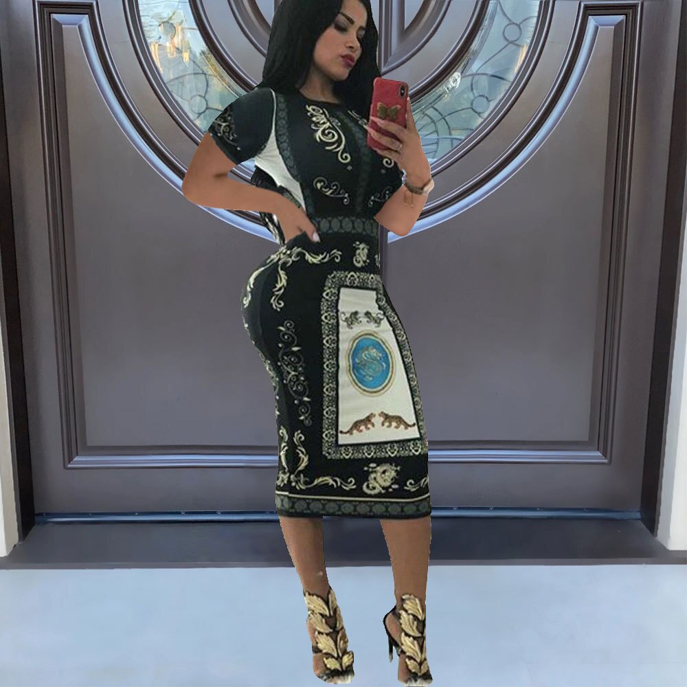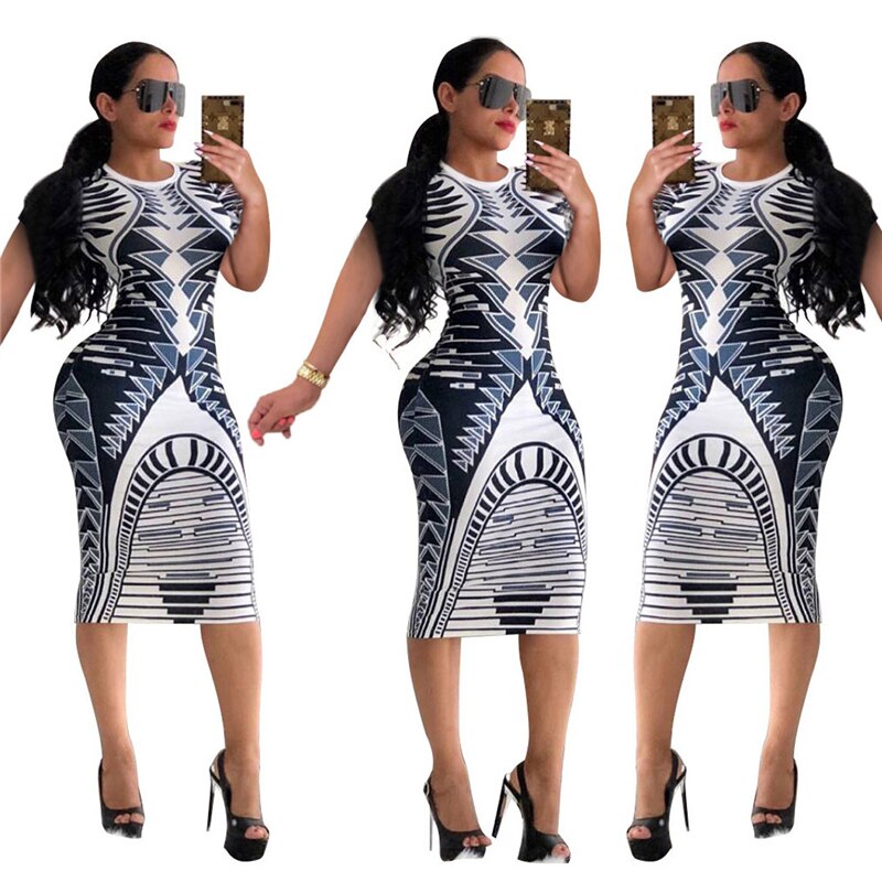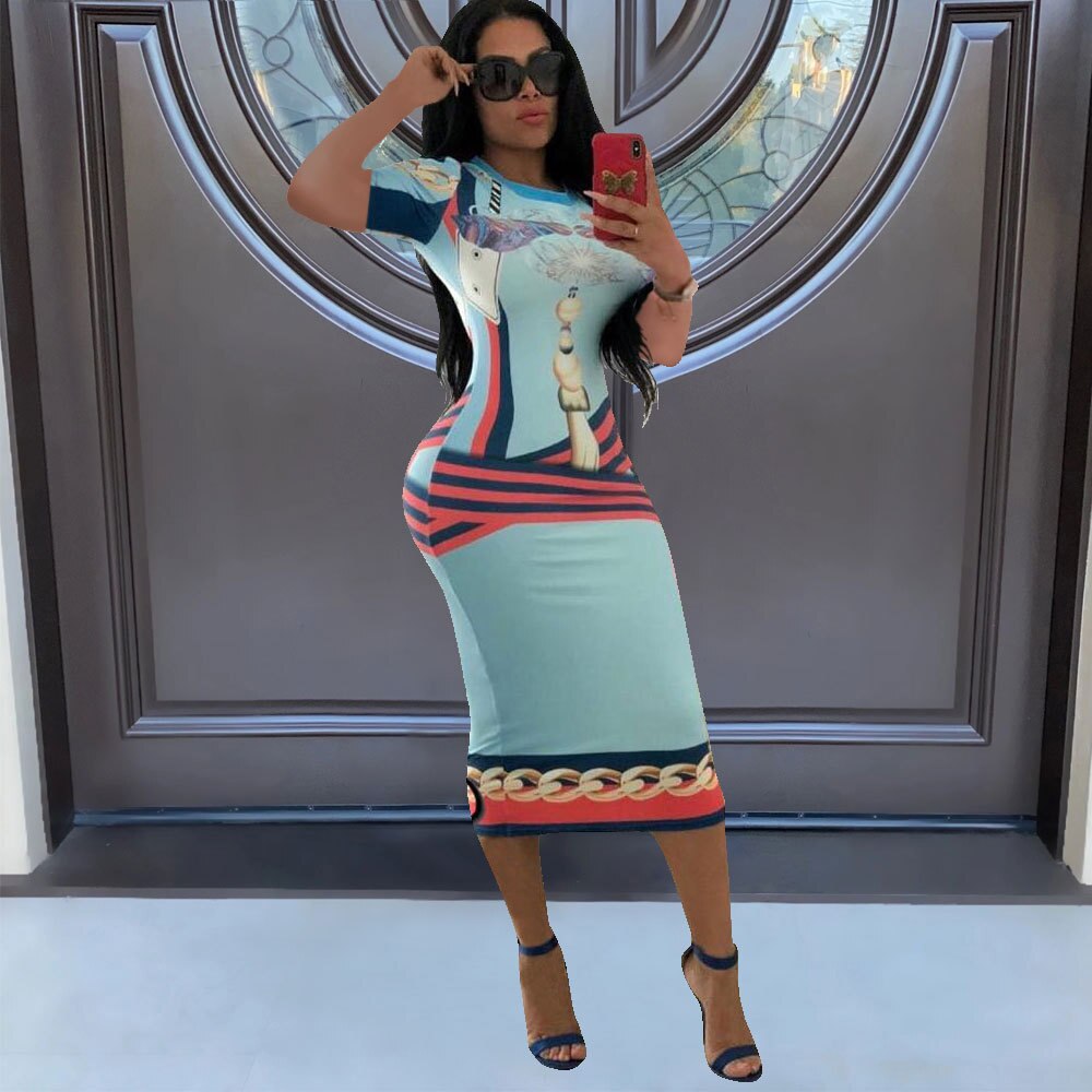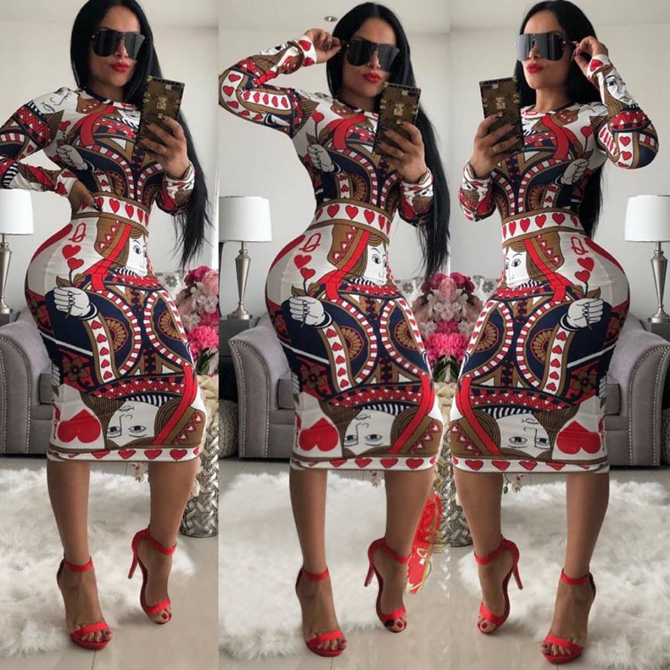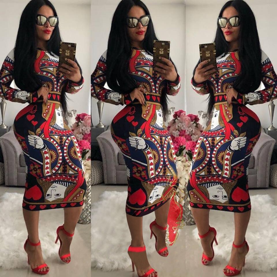 Multicolor Print Novelty Bodycon Sheath Dress Women Summer Long Sleeve Knee-Length Casual Dresses Elegant Slim Midi Robe FemmeSPECIFICATIONS