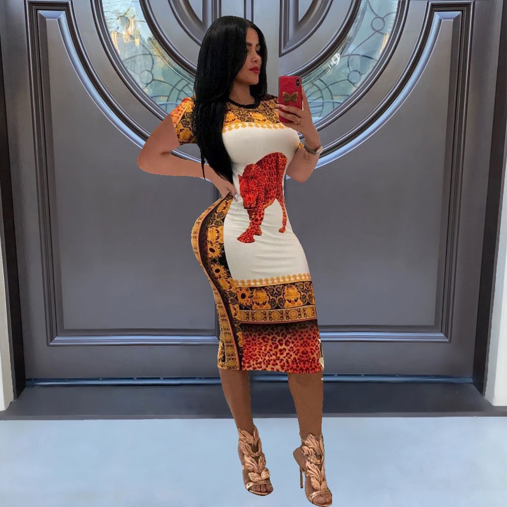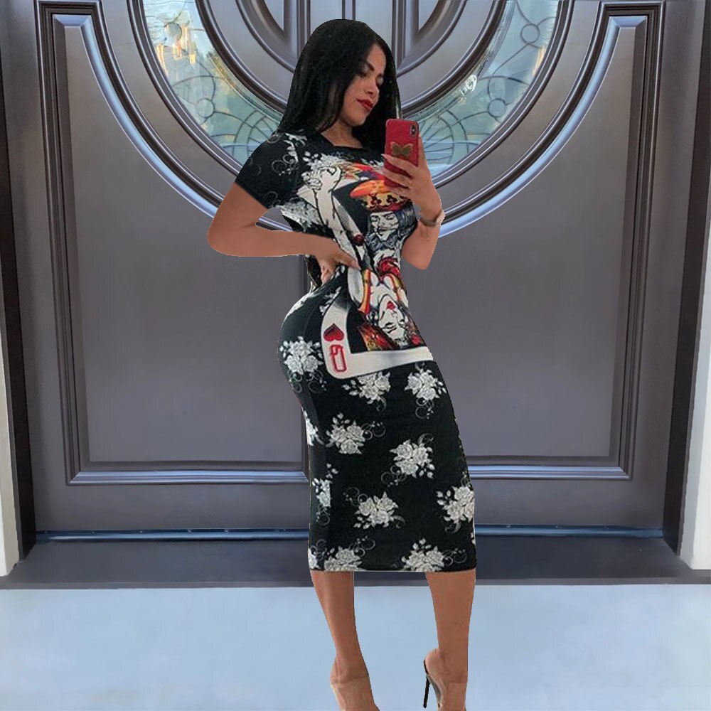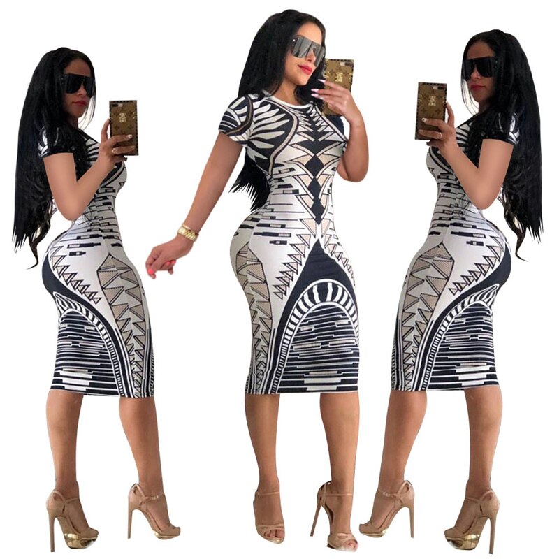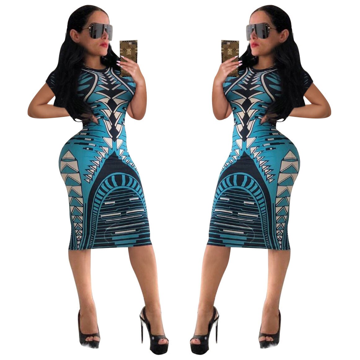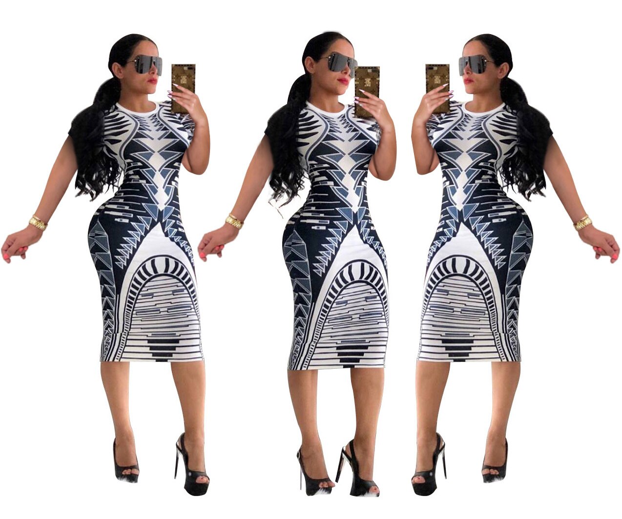 Multicolor Print Novelty Bodycon Sheath Dress Women Summer Long Sleeve Knee-Length Casual Dresses Elegant Slim Midi Robe FemmeSPECIFICATIONS