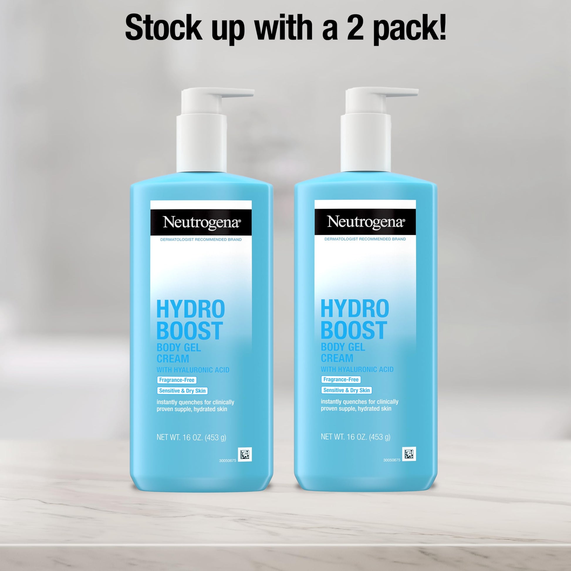 Best Selling Neutrogena Hydro Boost Body Gel Cream Moisturizer with Hyaluronic Acid, Hydrating Lotion For Sensitive Skin, Fragrance Free, Twin Pack, 2 x 16 oz