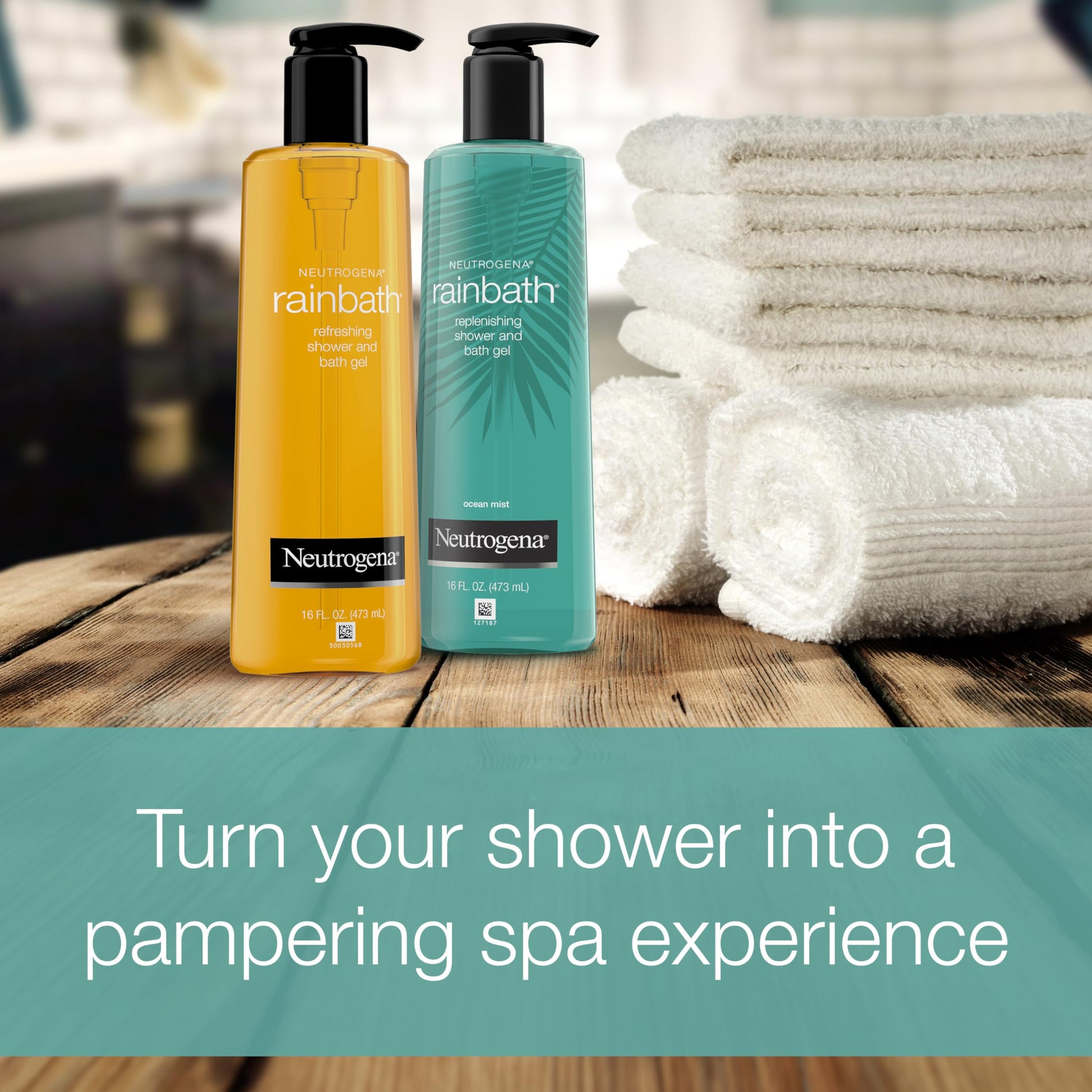 - Pack of two, 16-fluid ounce pump bottles of Neutrogena Rainbath Refreshing Shower & Bath Gel featuring the refreshing ocean mist & original scents that provides a clean burst that awakens your senses & refreshes your entire body