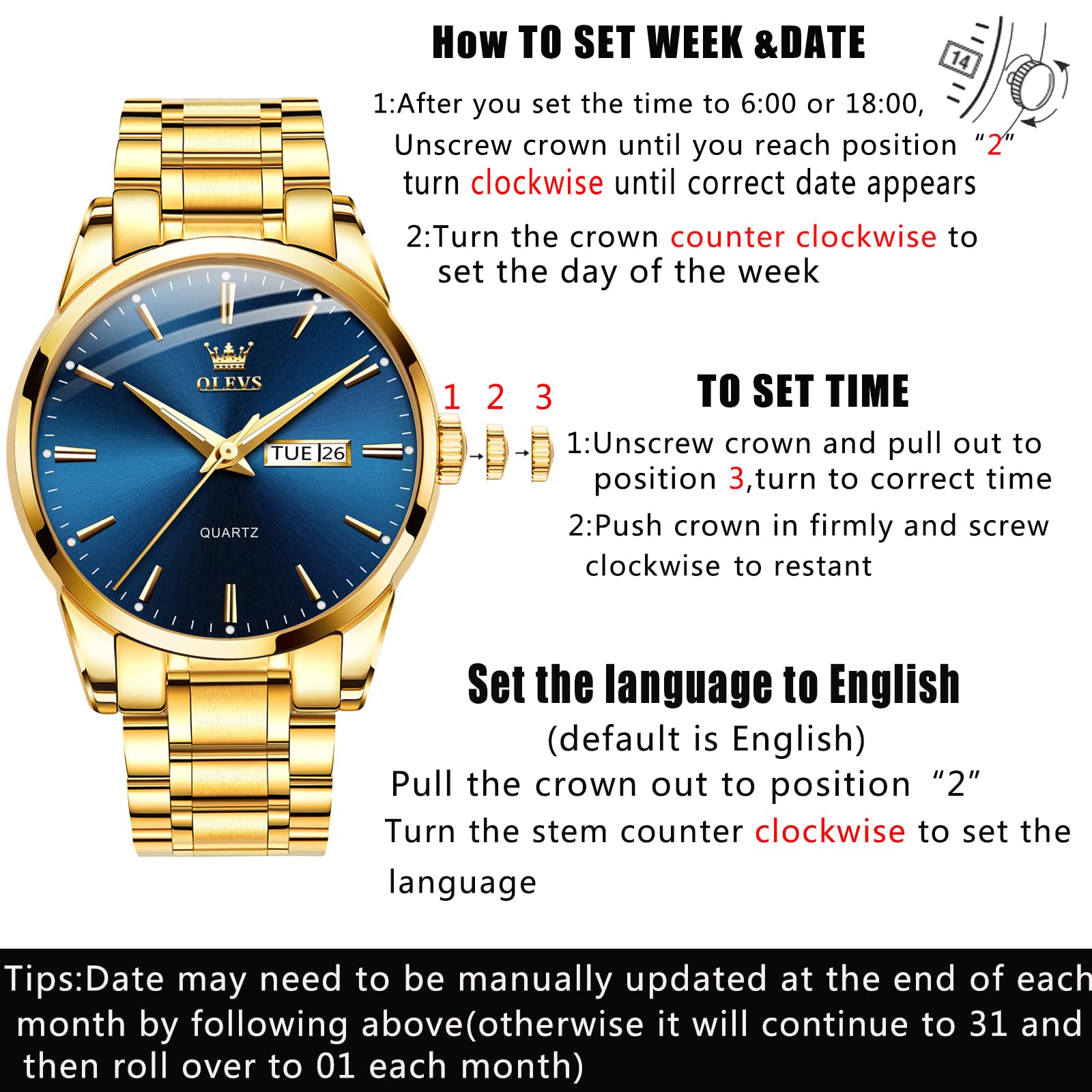 - 【OLEVS Service】💗Any problems with the watch after you receive, We will give a full refund, we provide 1 year free warranty💗 No matter what problem you encounter, you can contact me in time, I will provide you with a satisfactory solution