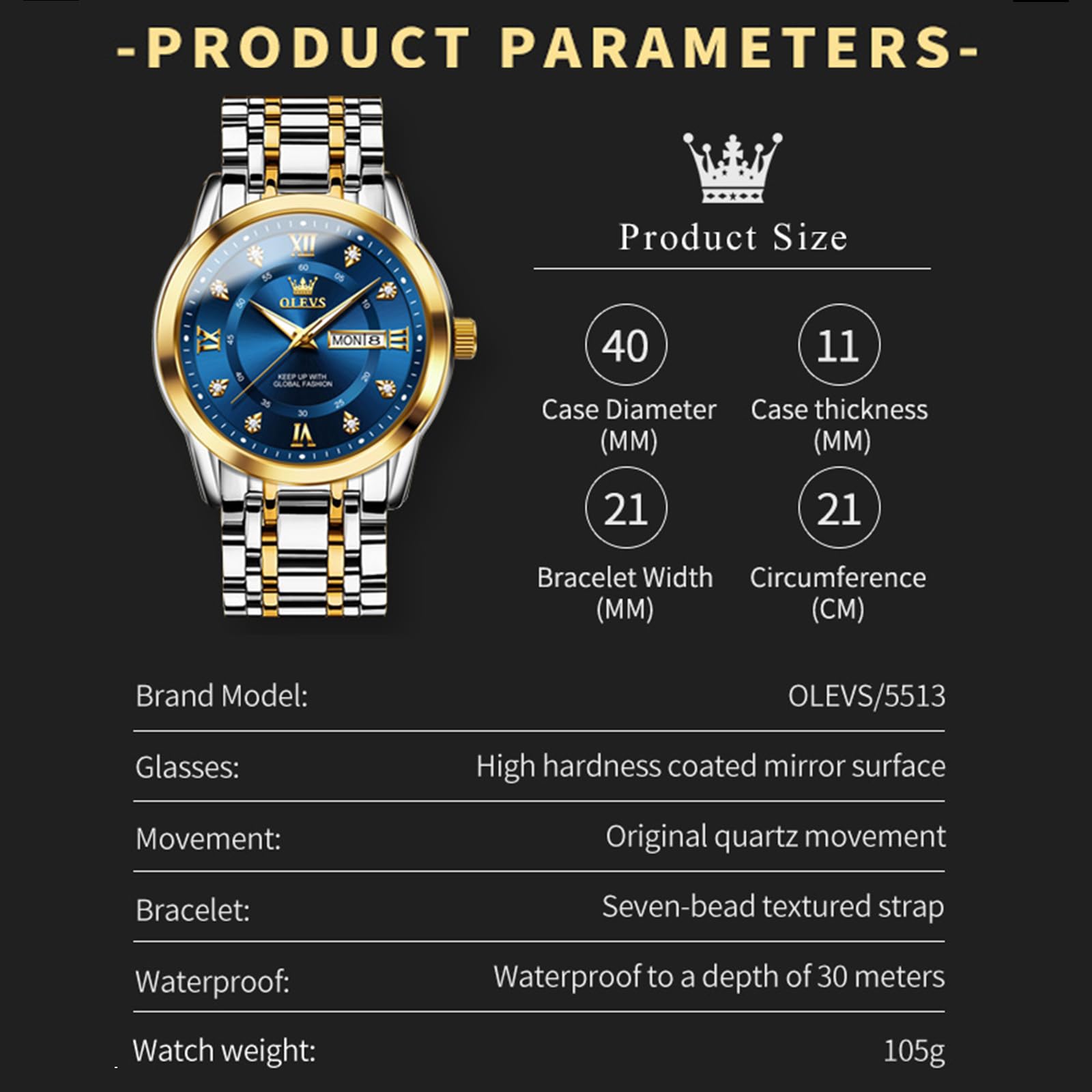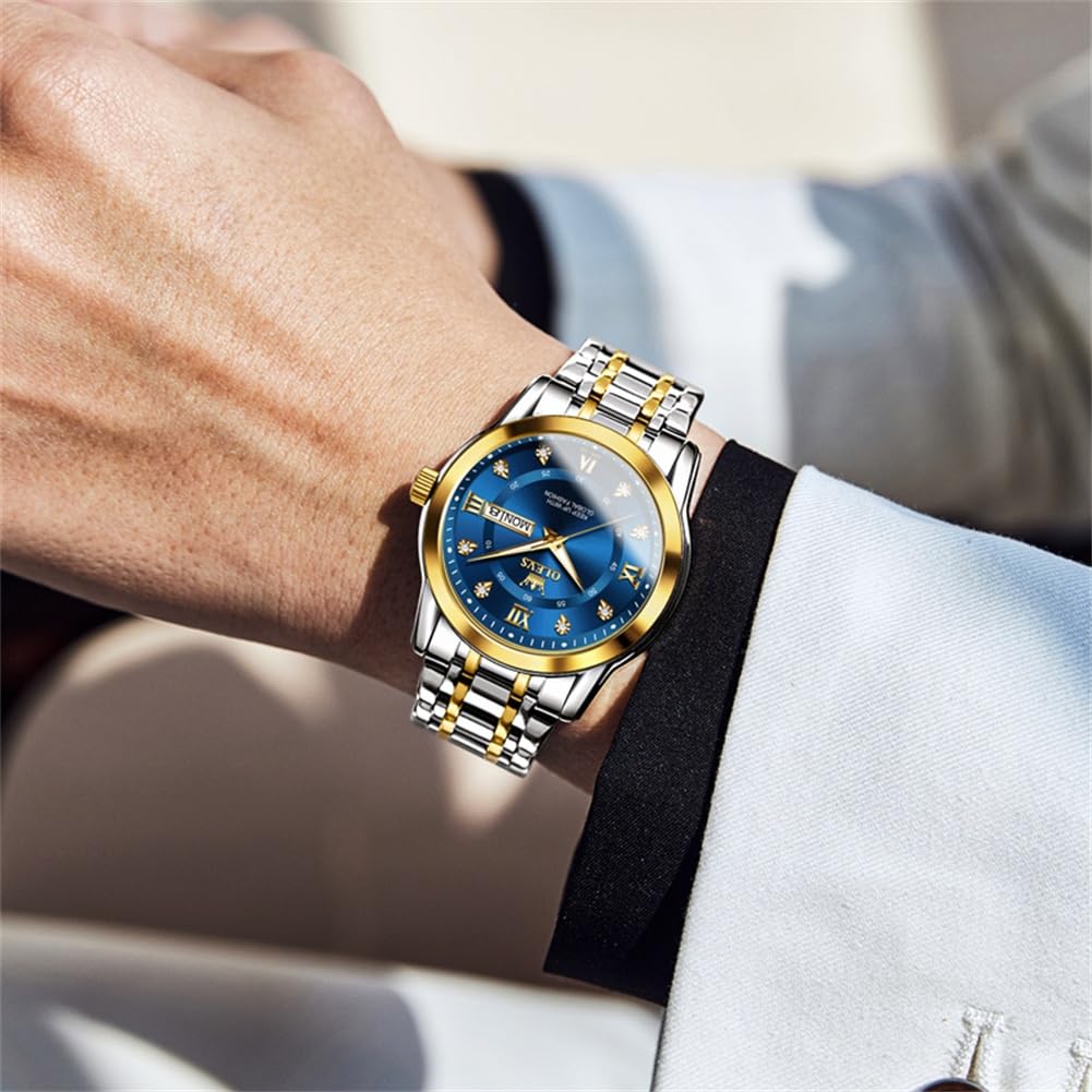 OLEVS Men's Watches Gold and Blue Mens Watches Luxury Dress Watches for Men Classic Two Tone Mens Wrist Watches Analog Quartz Watches Mens Waterproof Stainless Steel Watches Reloj para HombreAuthor: XQIYI