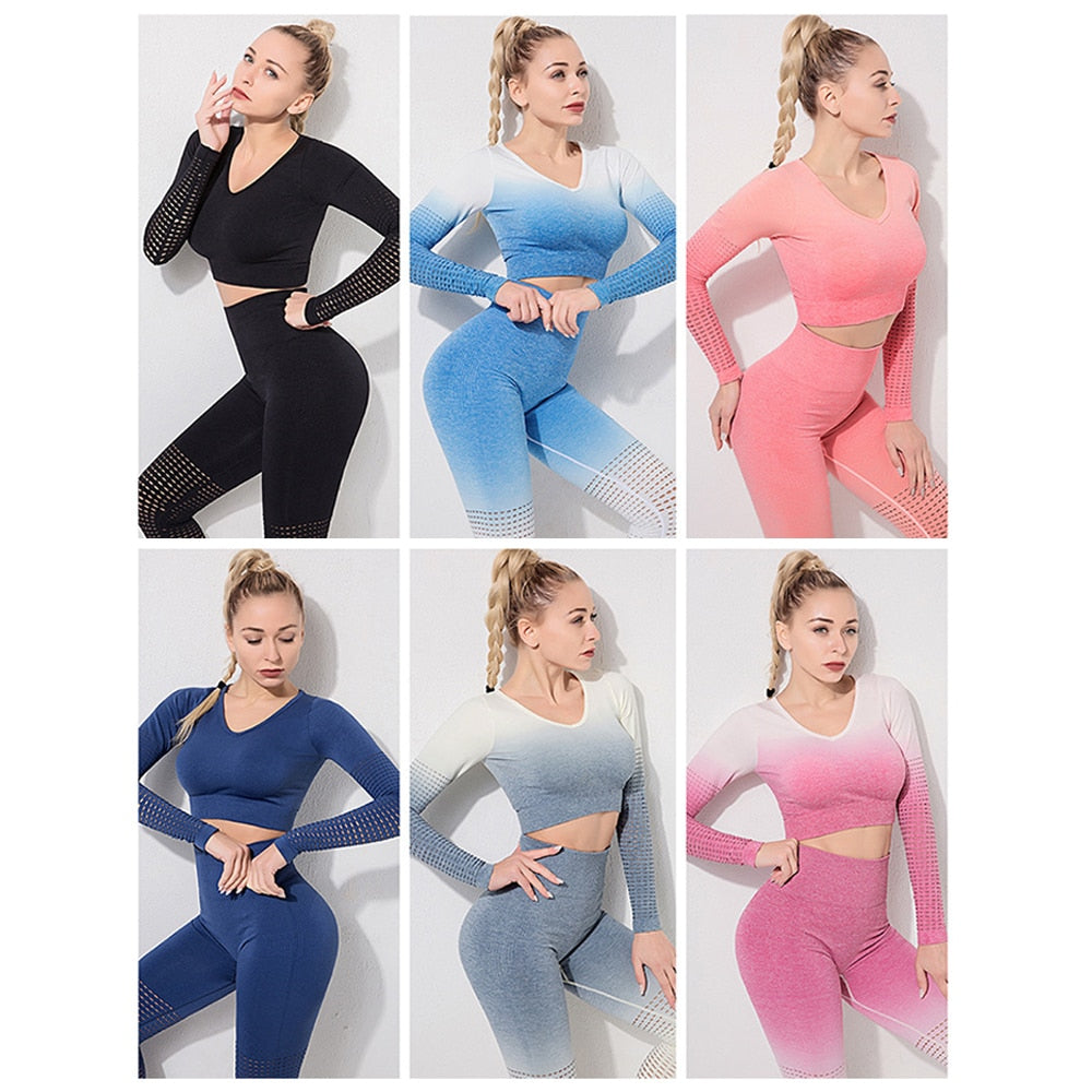 Ombre Seamless Yoga Set 2 Piece Set Women Sports Bras And Leggings Women Gym Set Workout Clothes For Women Sport Set Sportwear