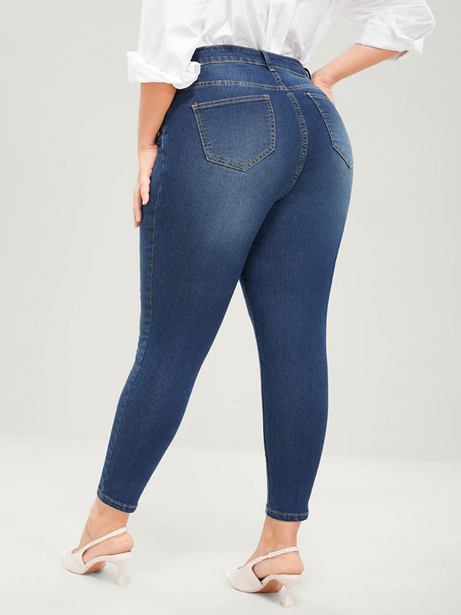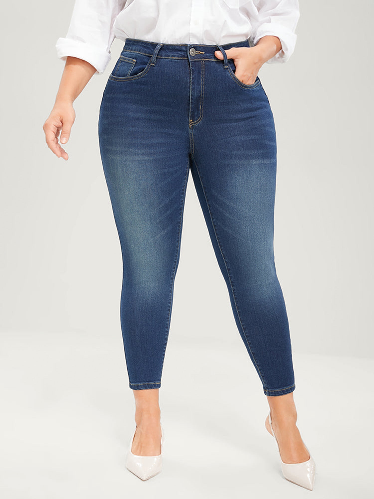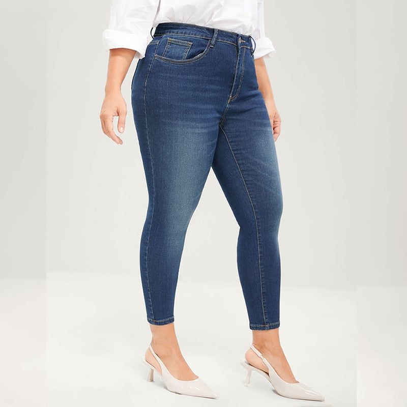 Plus Size Pencil Jeans for Women 100 Kgs Full Length Skinny Denim Pants High Waist Stretchy Washed Women Jeans Dark Blue JeansSPECIFICATIONS