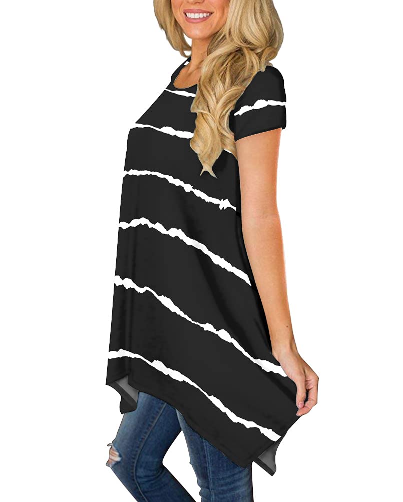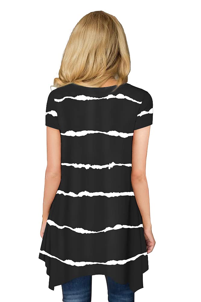 POPYOUNG Womens Summer Short Sleeve Tunic Tops Casual Swing Blouse Shirt XL, Stripe BlackBrand: POPYOUNG