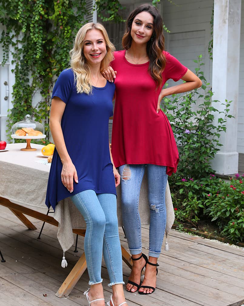 - ❤ 【Feature】: This tunics have enough length, nice coverage in hem ornament the belly and bottom area. It is great with skinny jeans or leggings. Also it looks cute and nice as Irregular Hem Asymmetrical design.
