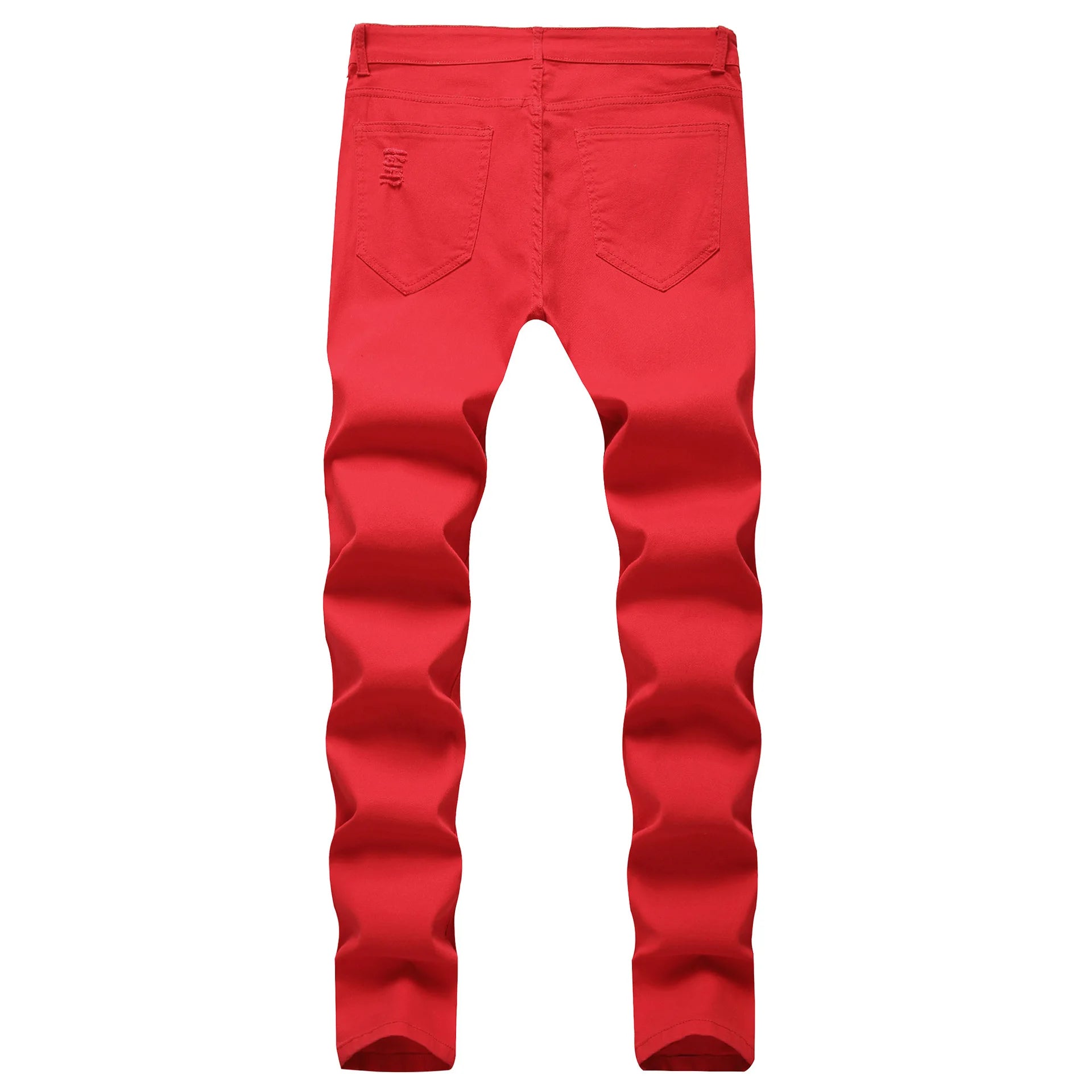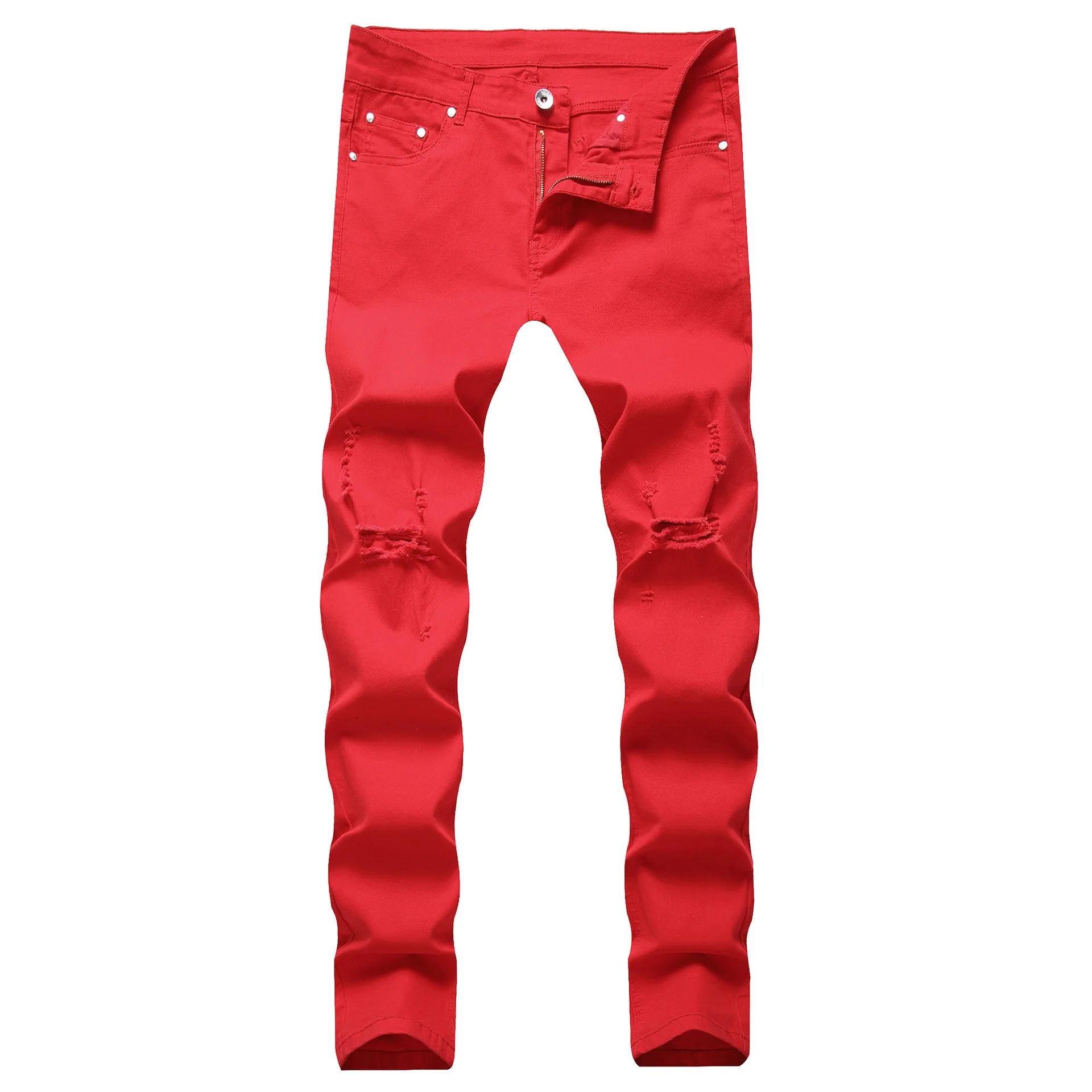 Punk Street Style Ripped Skinny Jeans Men Vintage Wash Solid Denim Trouser Mens Casual Slim Fit Pencil Denim Holes Pants 2024