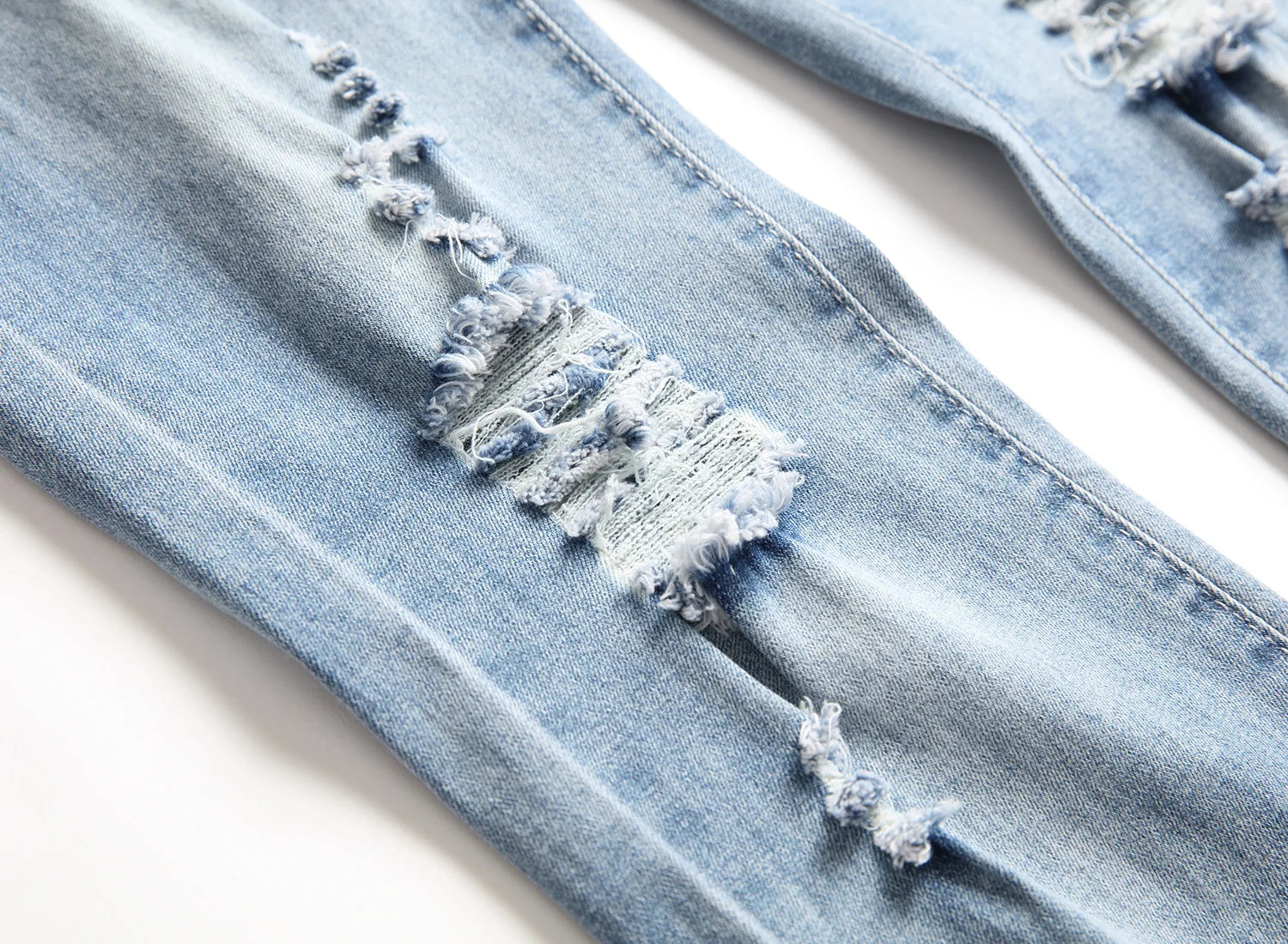 Punk Street Style Ripped Skinny Jeans Men Vintage Wash Solid Denim Trouser Mens Casual Slim Fit Pencil Denim Holes Pants 2024SPECIFICATIONS