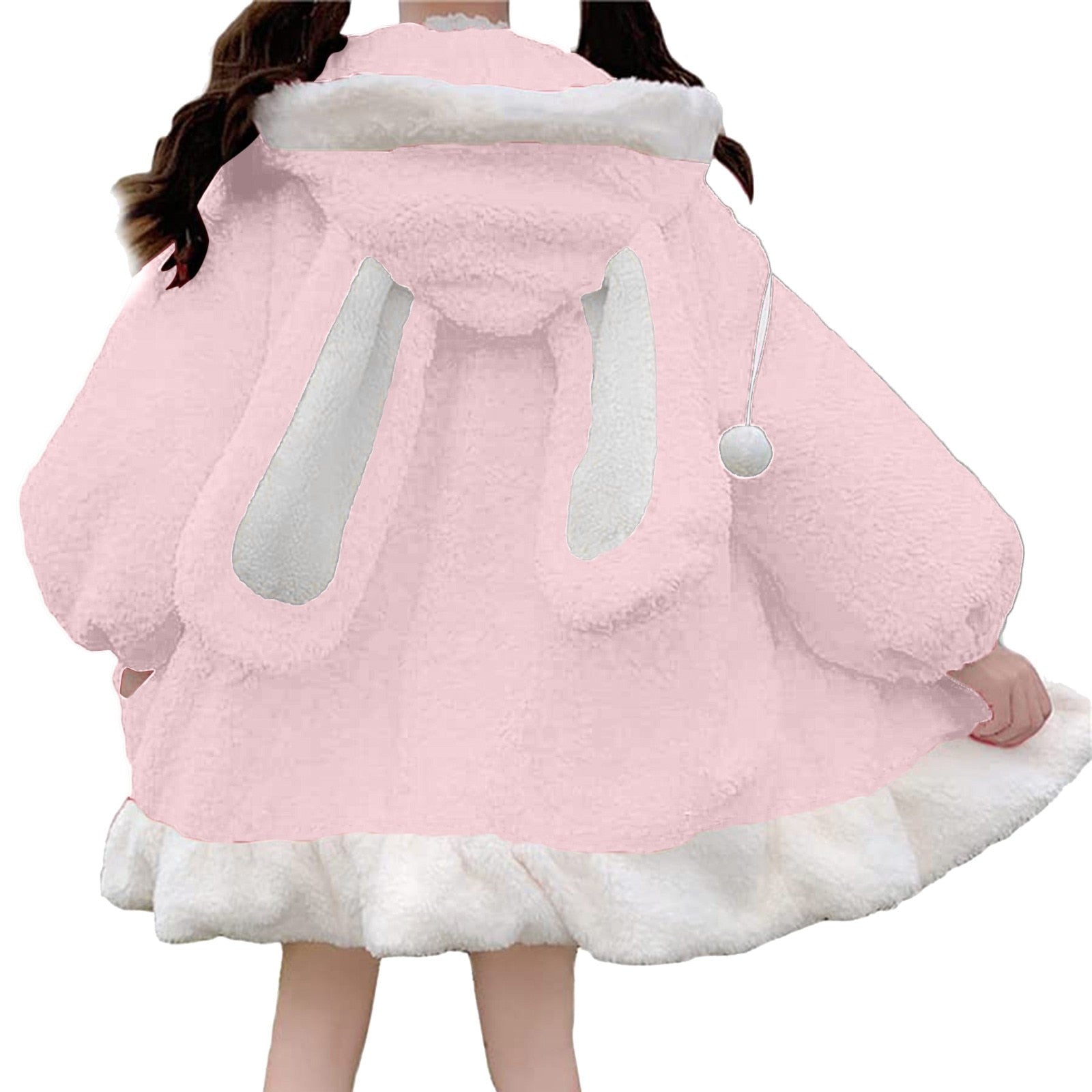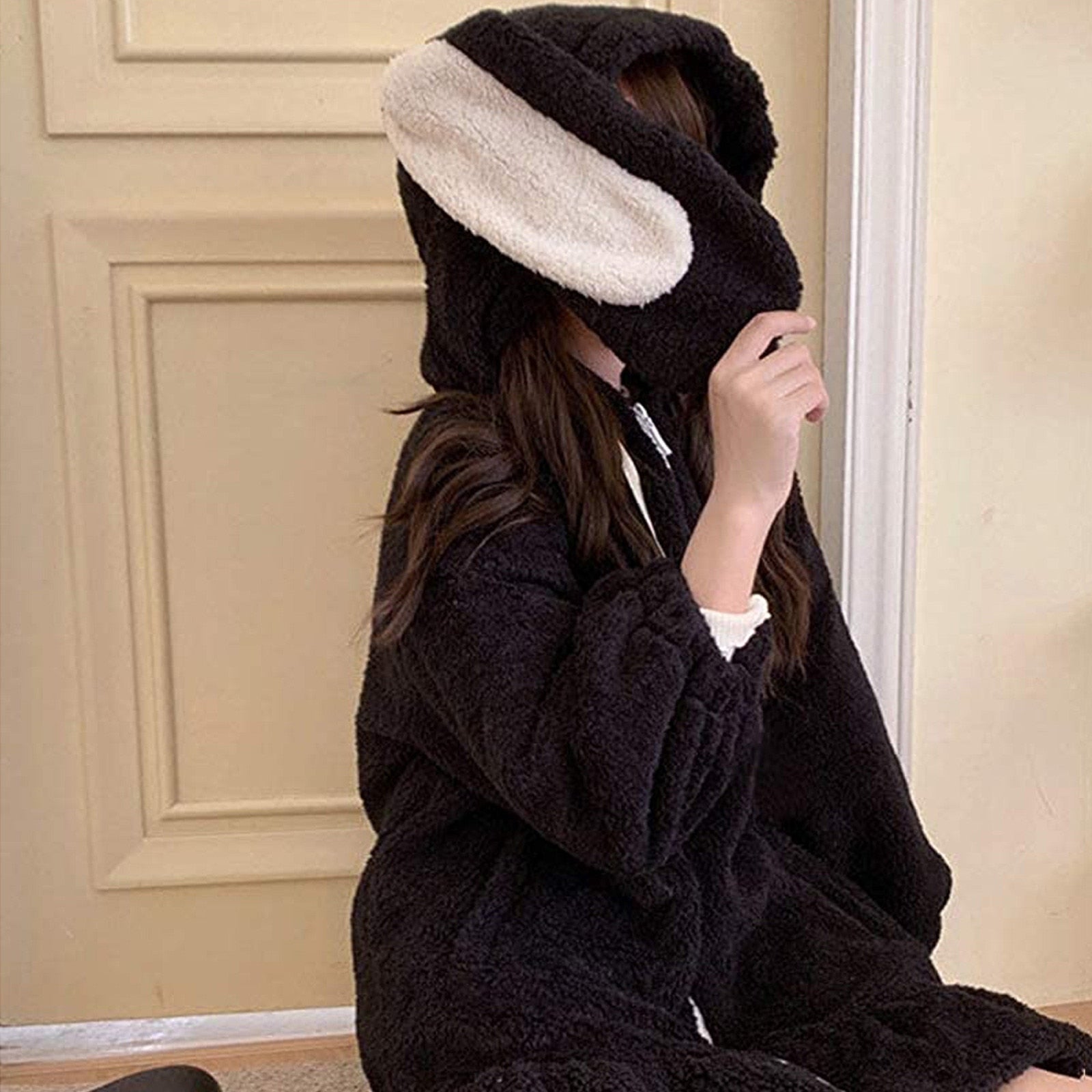 Rabbit Ears Hoodies Women Zip-up Sweatshirts Coat Long Lantern Sleeve Hooded Lolita Cute Sweet Girls Harajuku Warm Baggy OutfitsSPECIFICATIONS