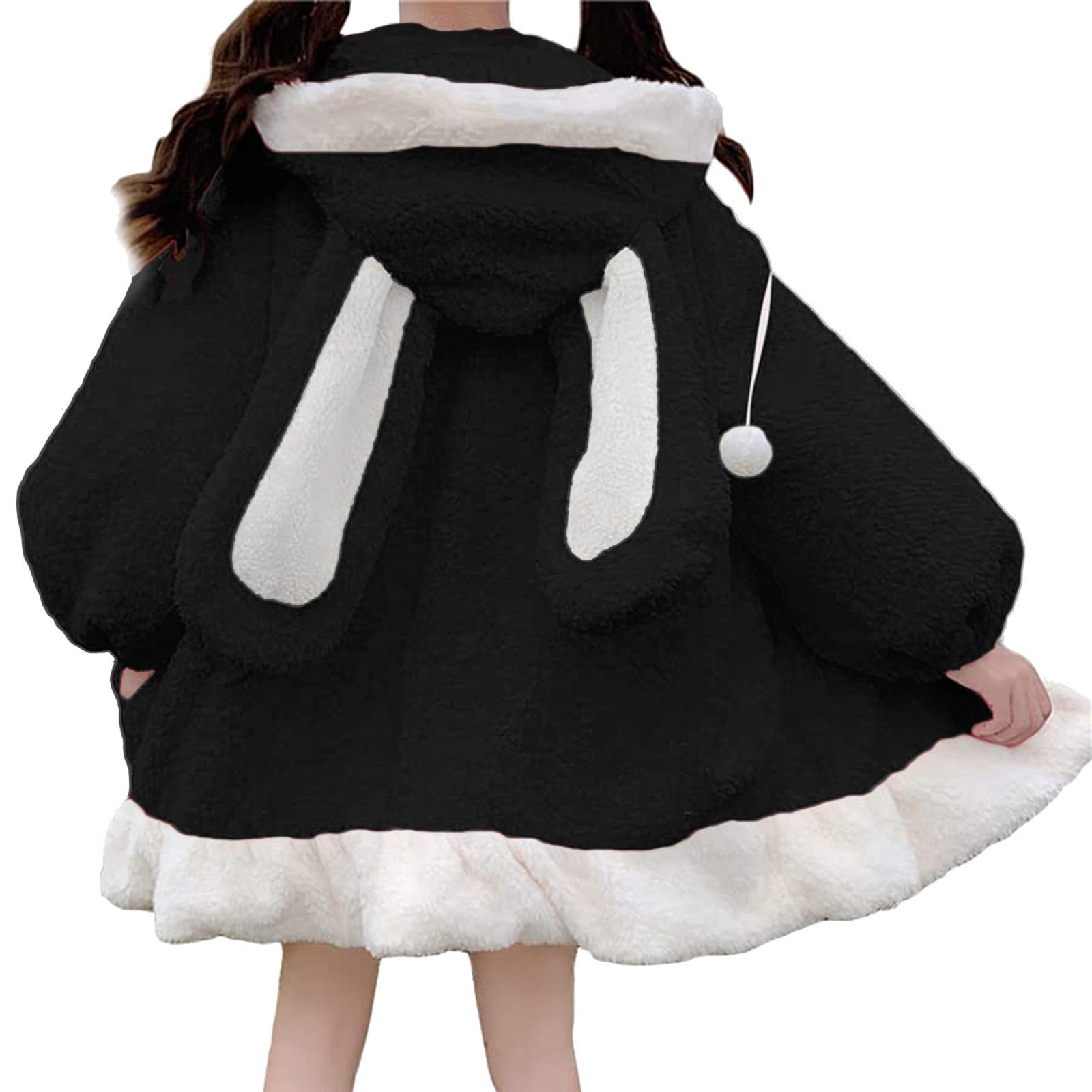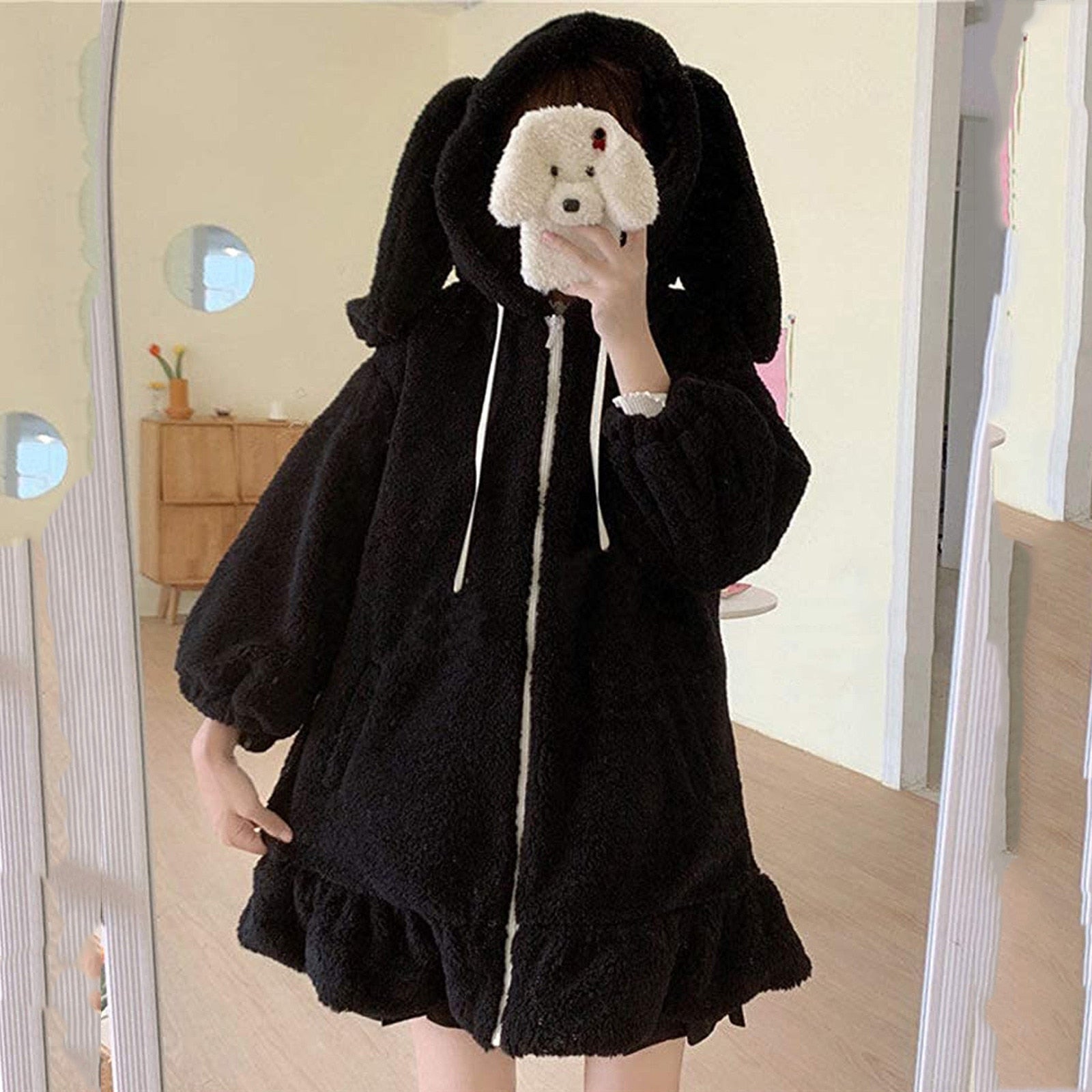Rabbit Ears Hoodies Women Zip-up Sweatshirts Coat Long Lantern Sleeve Hooded Lolita Cute Sweet Girls Harajuku Warm Baggy Outfits