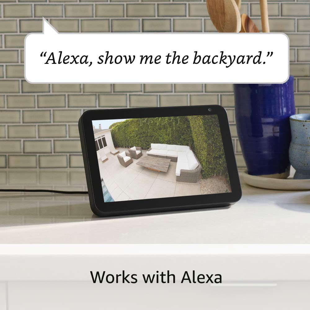 • For added peace of mind, pair with Alexa to help you keep an eye on your home. Connect with Alexa to hear motion alerts on your compatible Echo device or see a Live View with an Echo Show, Fire TV, or Fire Tablet. Talk to visitors by saying, “Alexa, talk to the front door.” With a Ring Protect plan (subscription sold separately), Alexa can also make voice announcements and automatically show live video feed on an Echo Show, Fire TV, or Fire Tablet when your Ring Floodlight Cam detects a person.