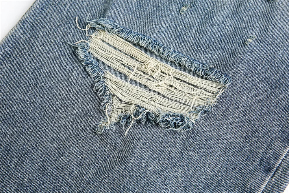 Best Selling Ripped Jeans Mens With Rivets Pocket Retro High Street Washed Distressed Loose Wide leg Denim Pants Men