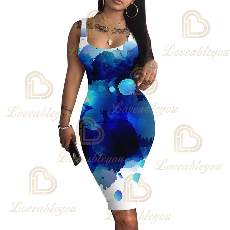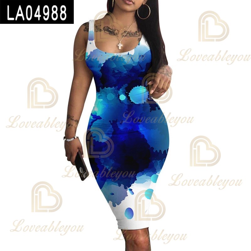 Robe Femme Women Lady V-Neck Pencil Dress Solid Color Backless 3D Print Bodycon Slim Slip Dress Summer Beach SundressSPECIFICATIONS