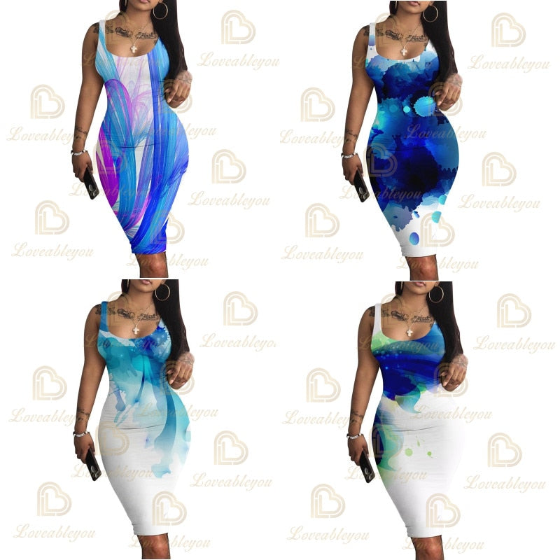 Robe Femme Women Lady V-Neck Pencil Dress Solid Color Backless 3D Print Bodycon Slim Slip Dress Summer Beach Sundress
