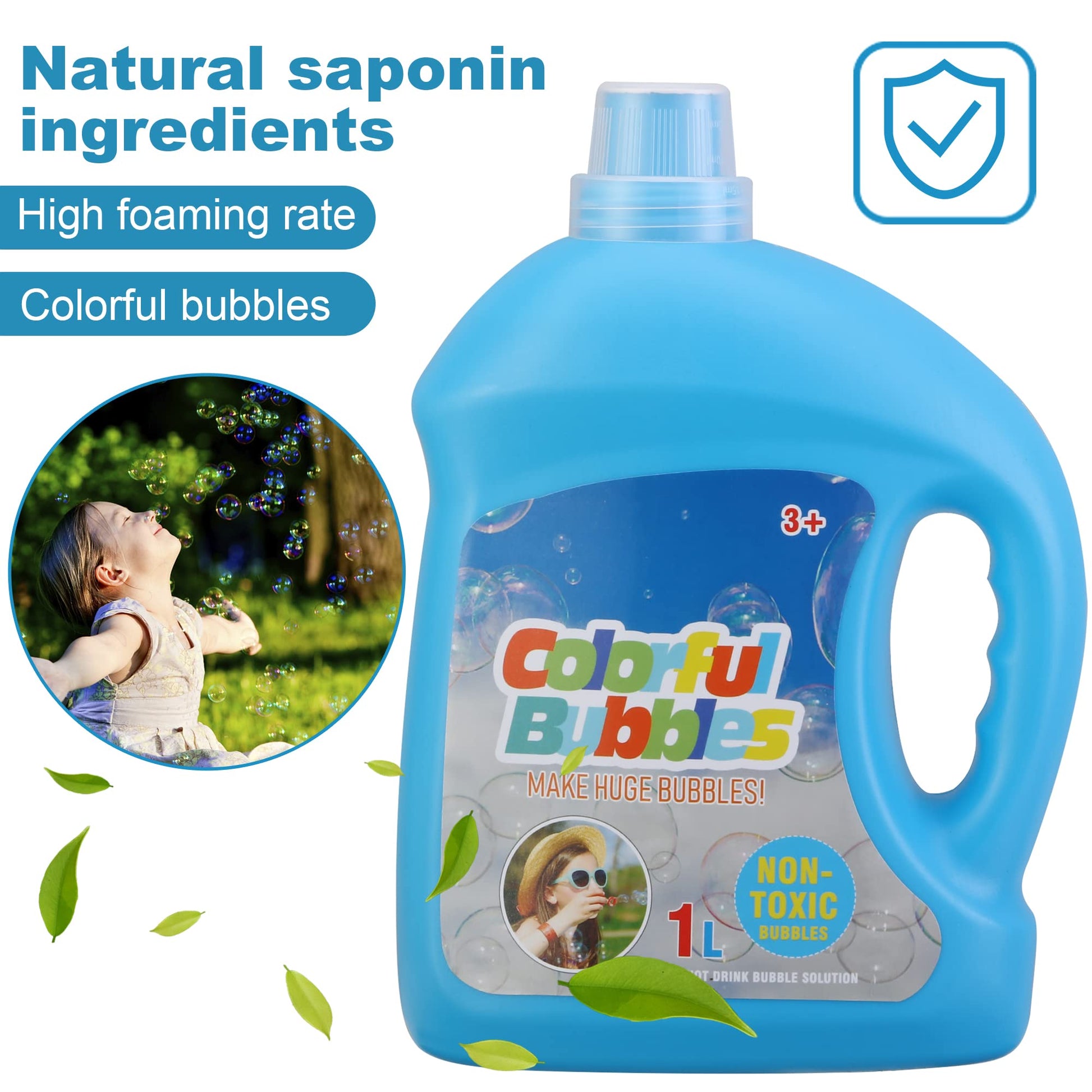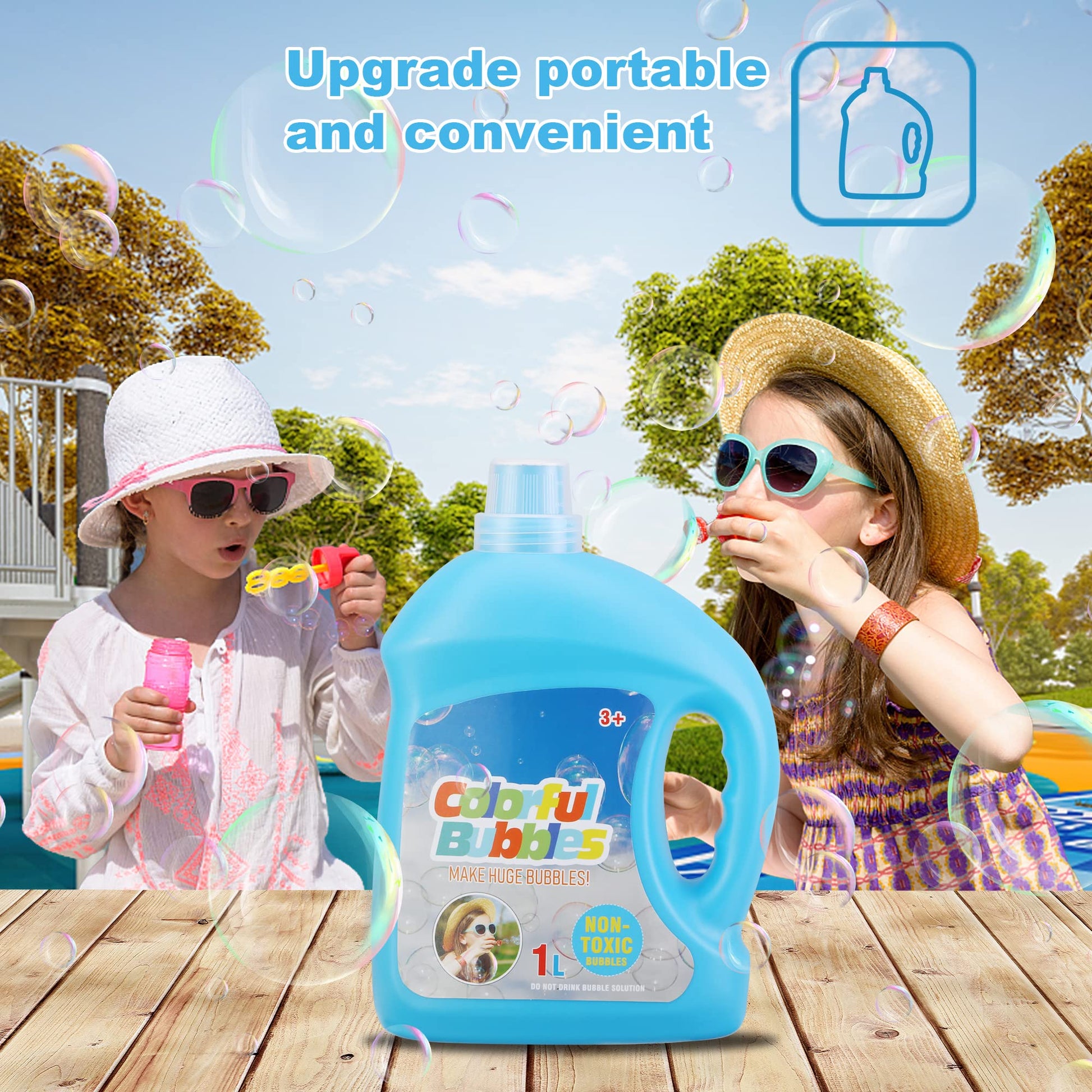 SHCKE Concentrated Bubble Machine Solution, 1 L/ 33.8 OZ Bubble Solution Refill for All Bubble Toys, Bubble Gun and Bubble Machine,Safe and Fun, Easy to Use, Leak-Proof and Portable