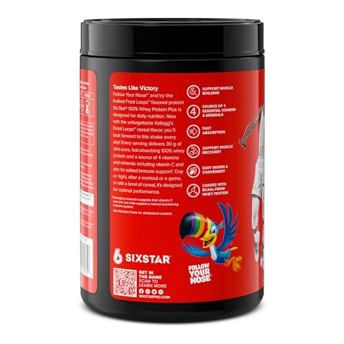 - IMMUNE SUPPORT – Six Star 100% Whey Protein Plus Froot Loops Flavor has an added immunity support matrix, including Vitamin C & Zinc, to help support your immune system