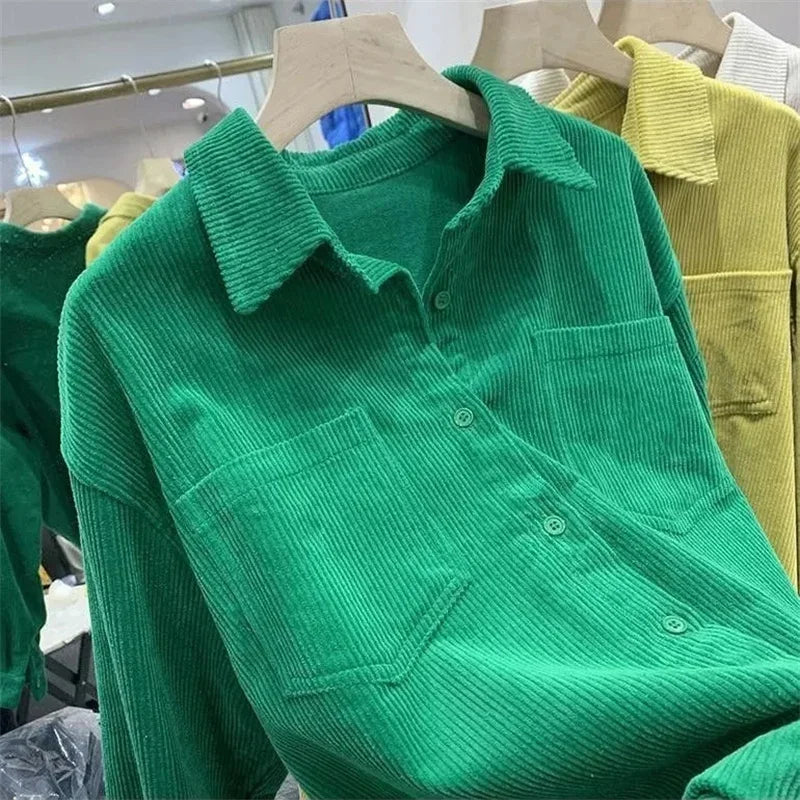 Solid Color Spring Female Corduroy Shirt Coat Women Leisure Long Sleeved Cardigan Blouse Jackets Ladies New Fashion Outwear