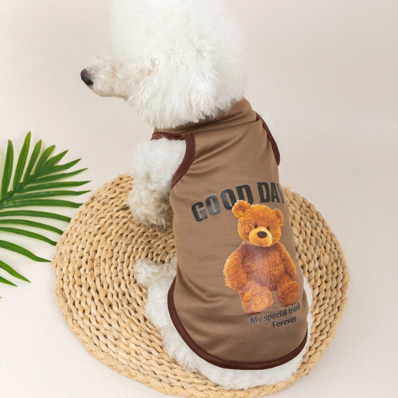 Spring Summer Dog Vest Thin Breathable Puppy Clothes Cute Bear Printed Cat T-shirt Sleeveless Chihuahua Pullover Pet Supplies