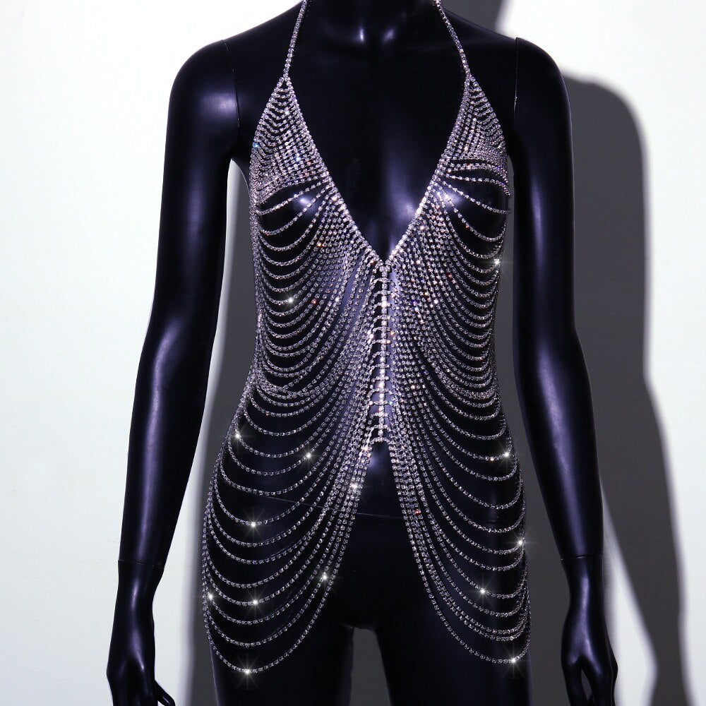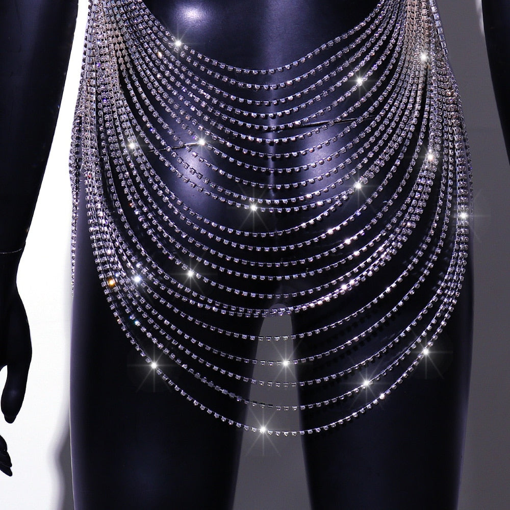 Stonefans Sexy Bodies Tassel Rhinestone Harness Body Chain Skirt Nightclub Party Wear Crystal Bikini Dress Chest Lingerie ChainSPECIFICATIONS
