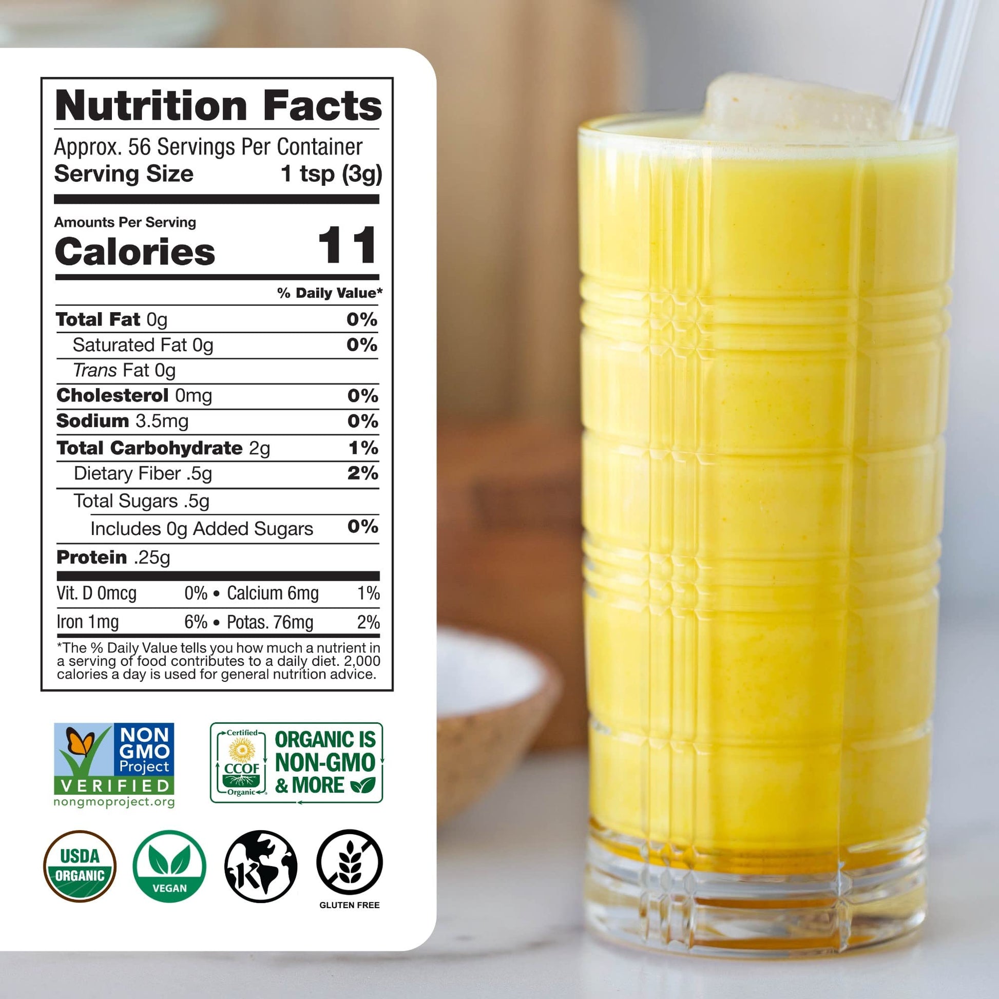 Sunfood Organic Golden Milk Super Blend is certified organic, non-GMO and 100% plant-based.