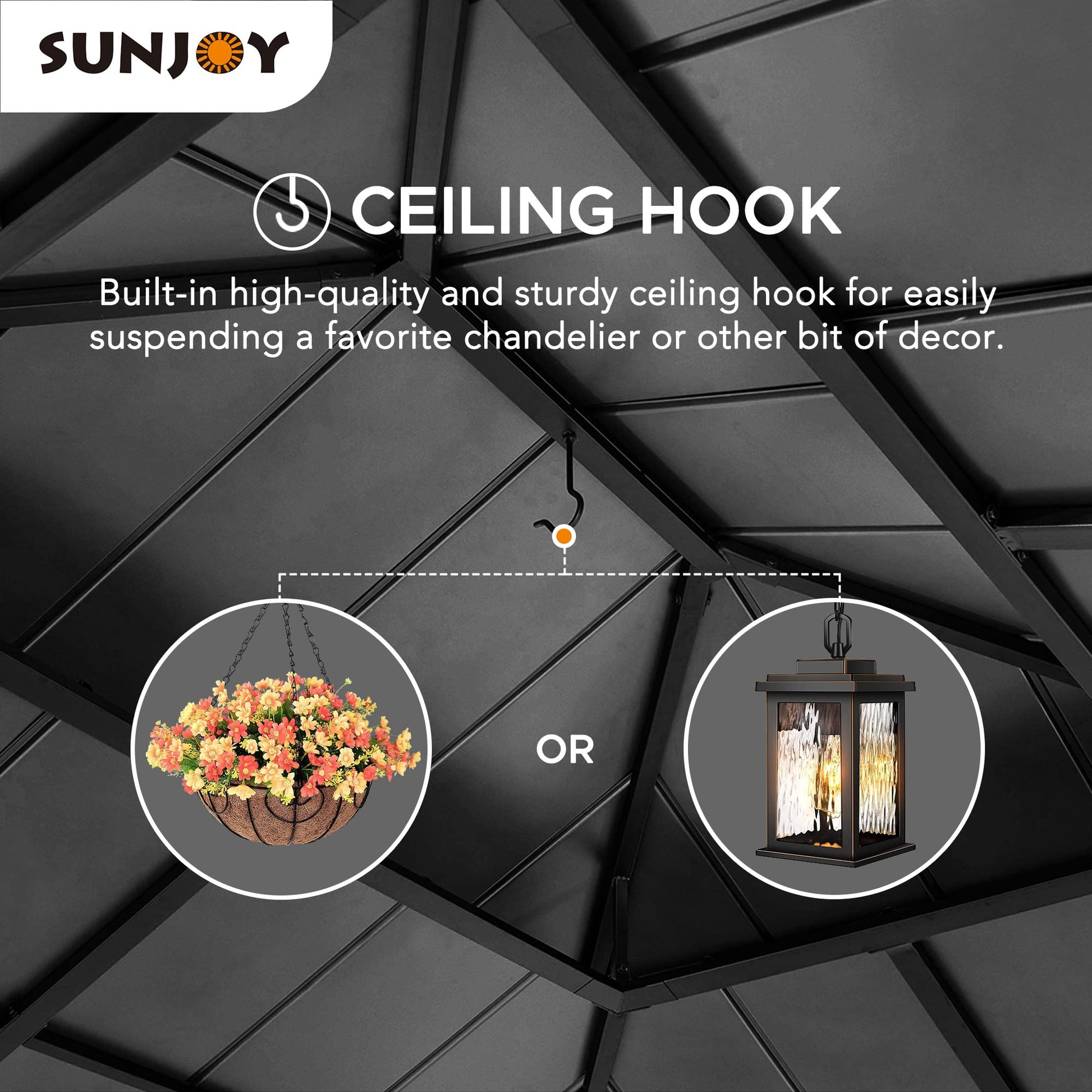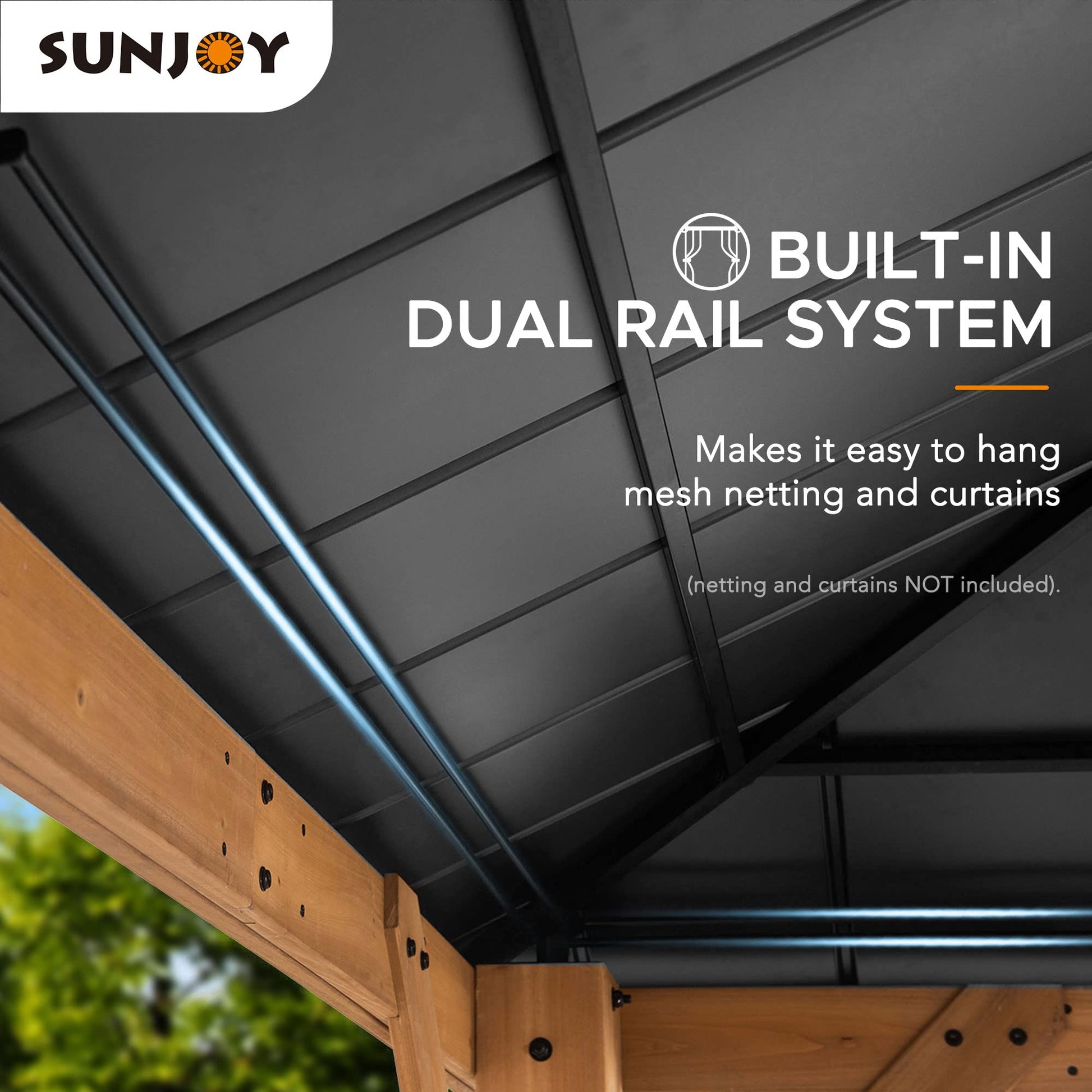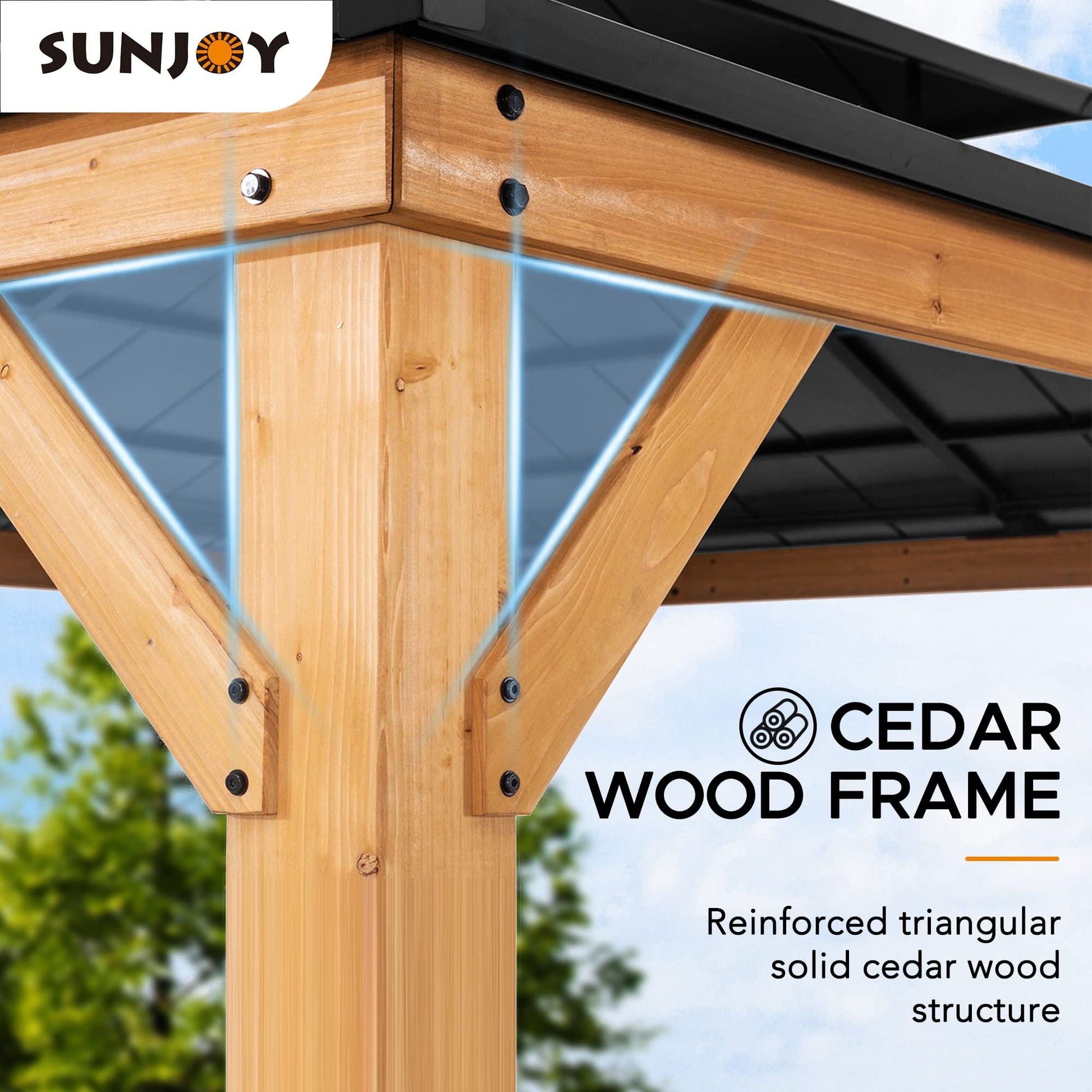Sunjoy 11 x 13 ft. Wood Gazebo Cedar Framed Gaezbos with Black Double Steel Hardtop Roof for Garden, Backyard Shade, Matte Black Roof + Natural Wood FrameBrand: Sunjoy