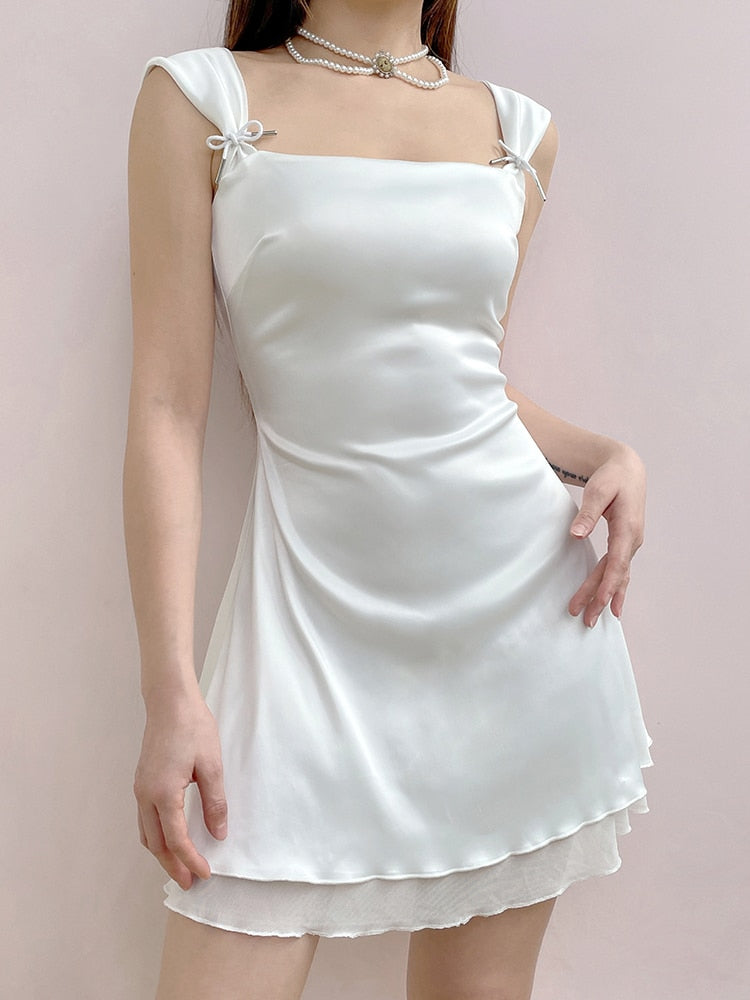 Sweetown Sleeveless Black Goth Y2K Mini Dresses Two Layer Korean Fashion Square Collar Kawaii A Line Birthday Dress For WomenSPECIFICATIONS