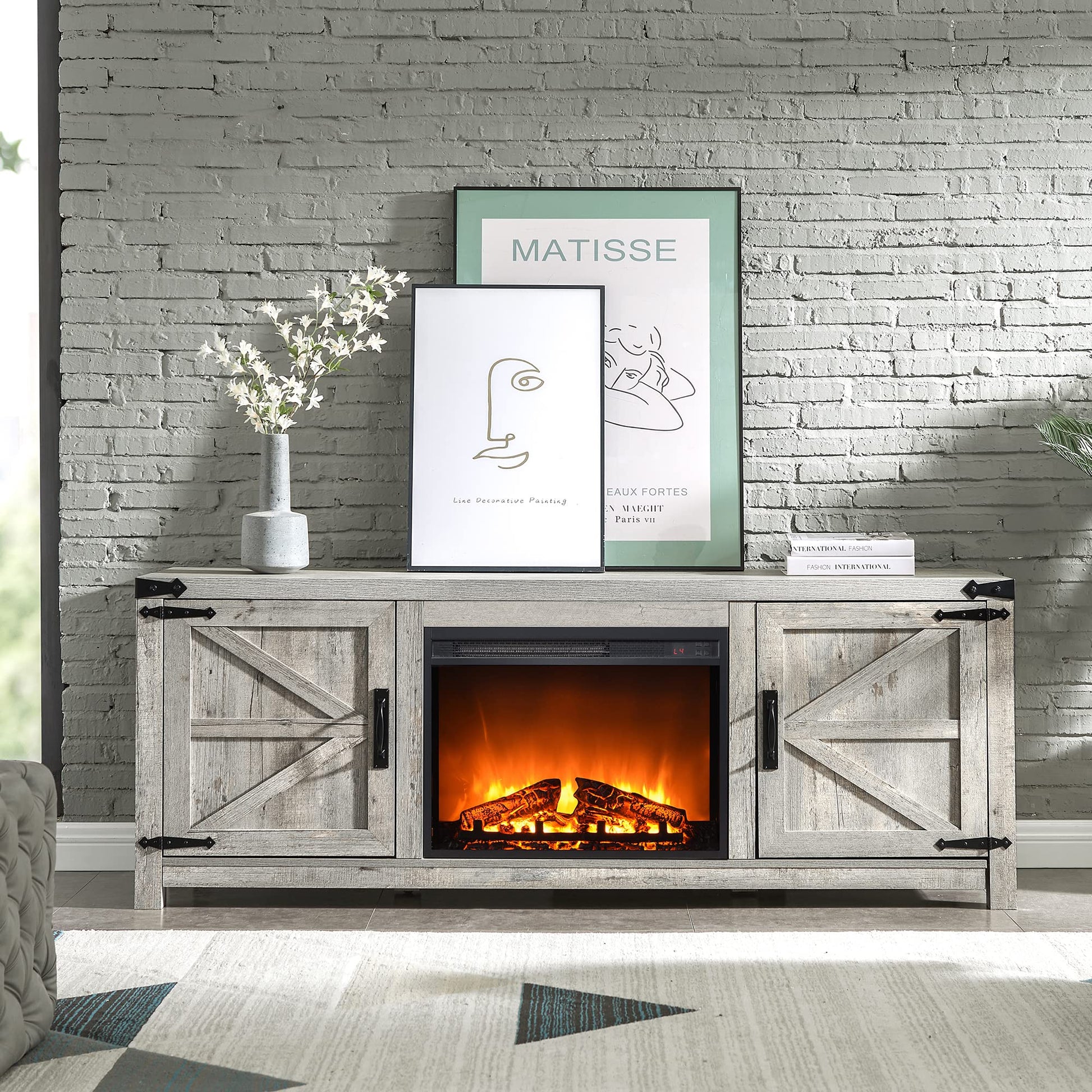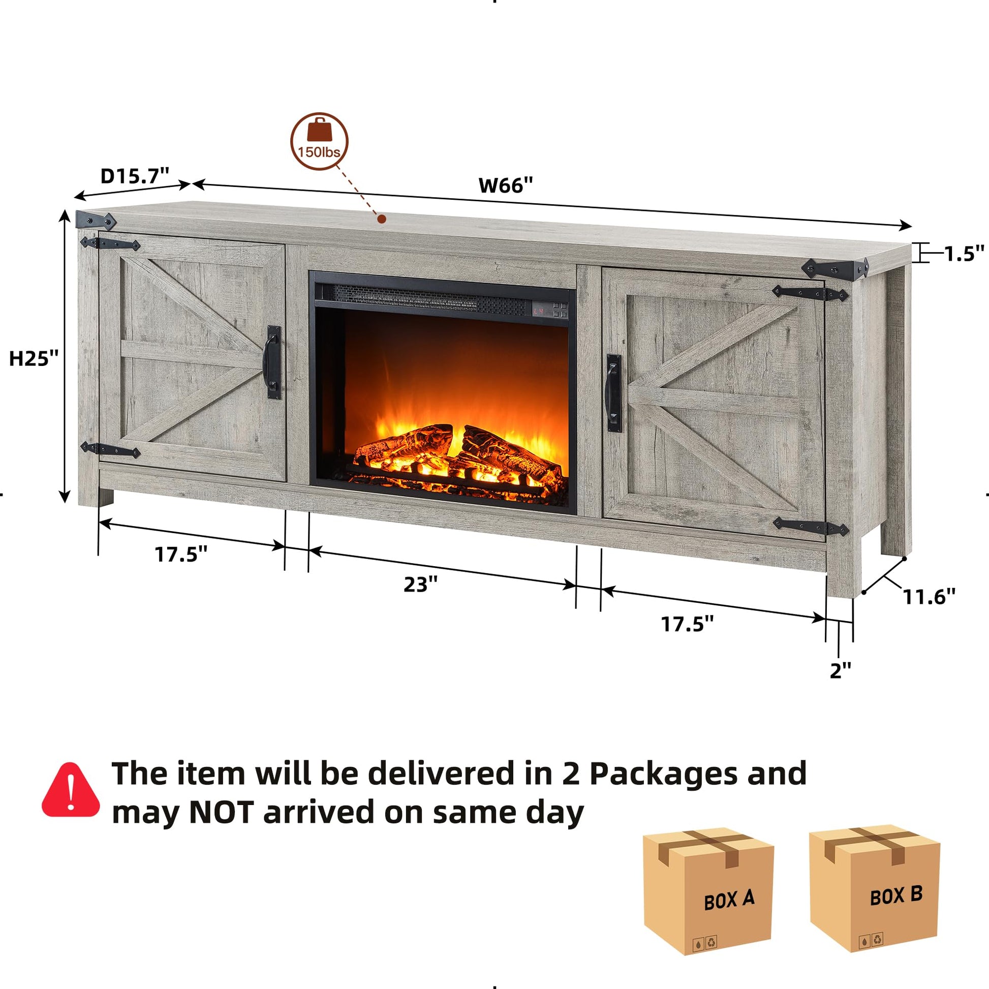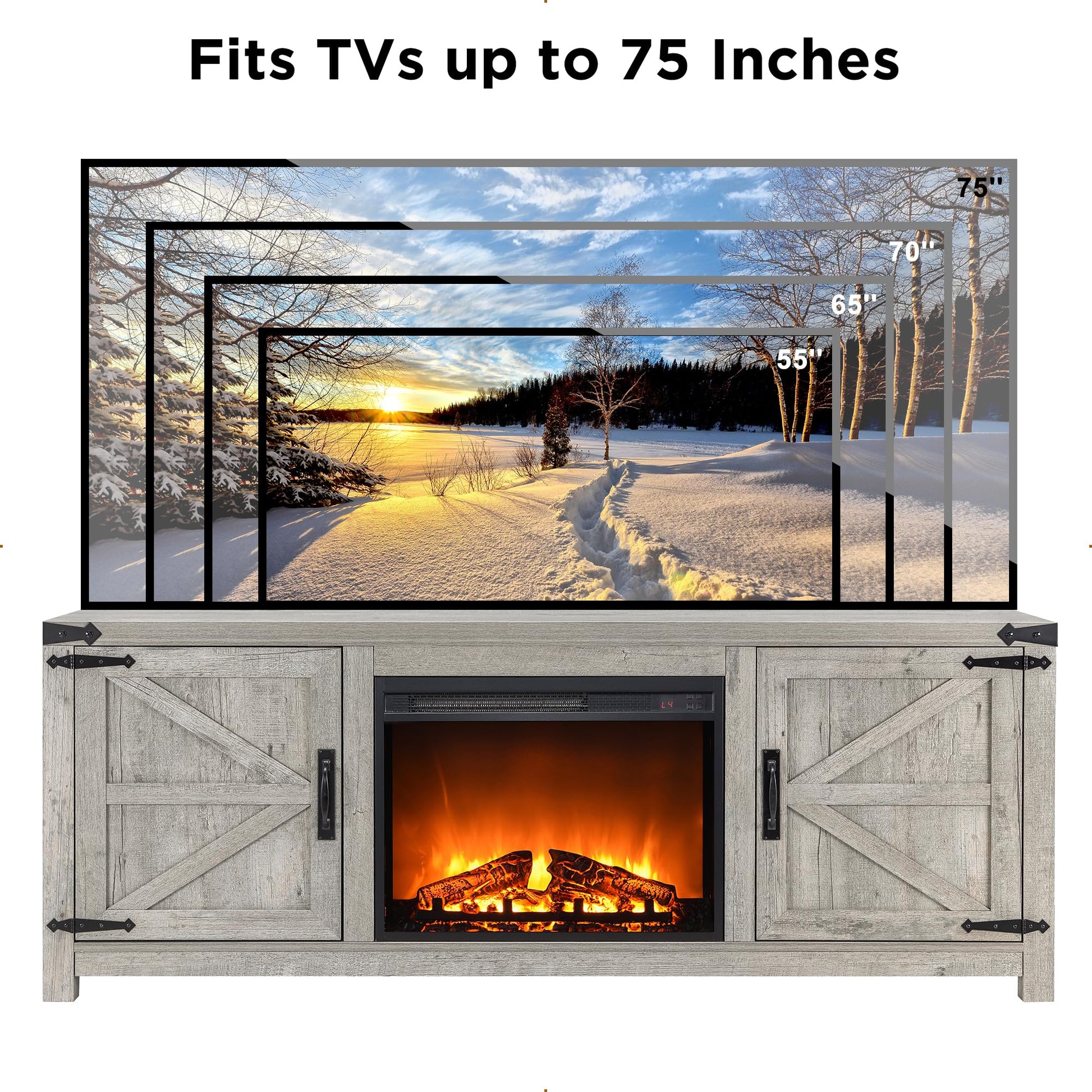 T4TREAM Fireplace TV Stand for 75 Inch TV, Farmhouse Barn Door Media Console, Entertainment Center with 23" Electric Fireplace Remote Control,for Living Room, 66 Inch, Light Rustic OakBrand: T4TREAM