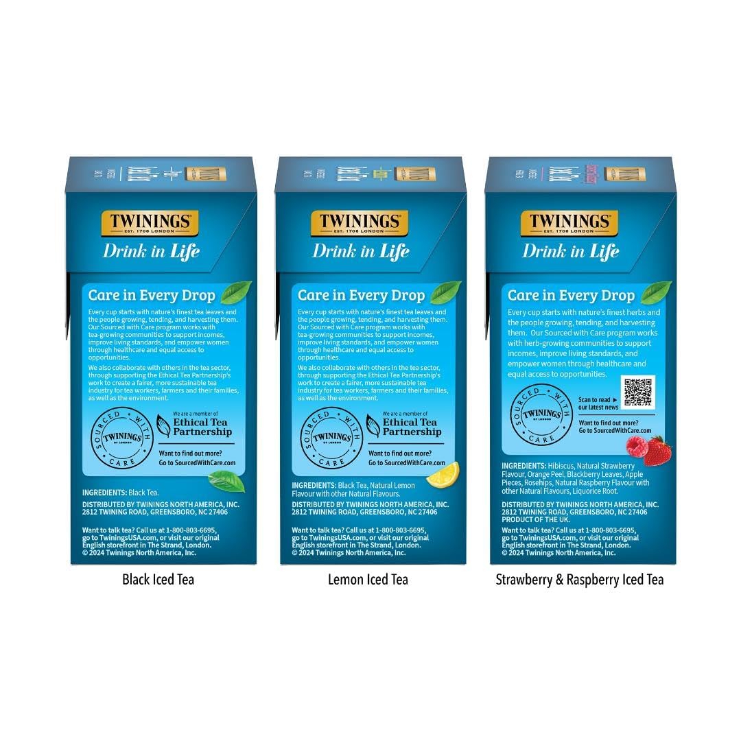 Twinings Iced Tea 3 Pack Variety Bundle (Black, Lemon Black, and Strawberry & Raspberry) 72 Count (Pack of 3), Makes 36 Pitchers or 432 Servings, Unsweetened, Caffeinated