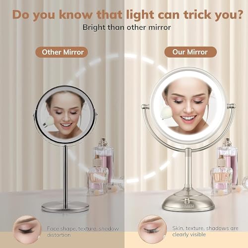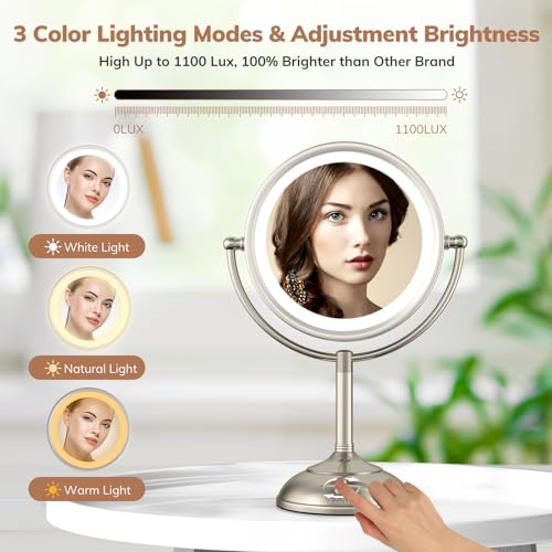 VESAUR Professional 8.5" Large Lighted Makeup Mirror Updated with 3 Color Lights, 1X/10X Magnifying Swivel Vanity Brightness Dimmable Cosmetic Mirror with 48 Premium LED Lights, Senior Pearl NickelBrand: VESAUR