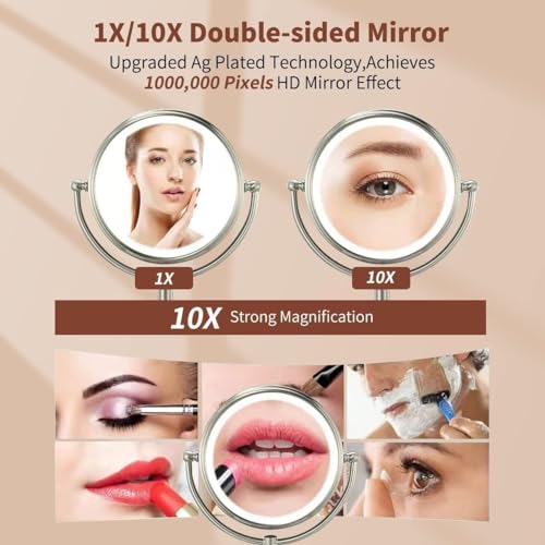 - ๐๐๐/๐๐๐ ๐๐ ๐๐๐๐๐๐ญ, ๐๐ฏ๐๐ซ๐ฌ๐ข๐ณ๐๐ ๐๐จ๐ฎ๐ง๐ ๐๐ข๐ซ๐ซ๐จ๐ซ Both 1X/10X Sides achieve over 10 Million Pixels HD Mirror Effect. โ 8.5 inch extra-large size offers a wide-angle view to pair hairdos with makeup. โกEasily rotate to the 10X magnifying side, uses the optical principle of No Pixels Loss Magnification to ensure zoom in on every facial details without distortion. Enjoy meticulous makeup and skincare!