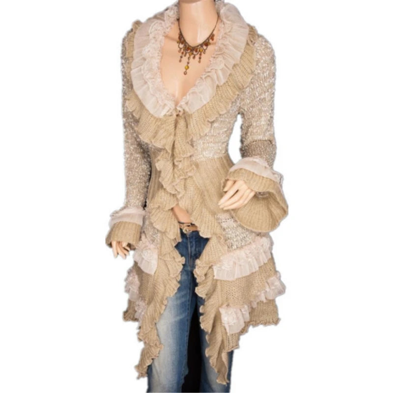 Vintage Renaissance Coat Women Lace Jacket Victorian Steampunk Stand Collar Medieval Lace Up Dress Suit Countess Cardigan