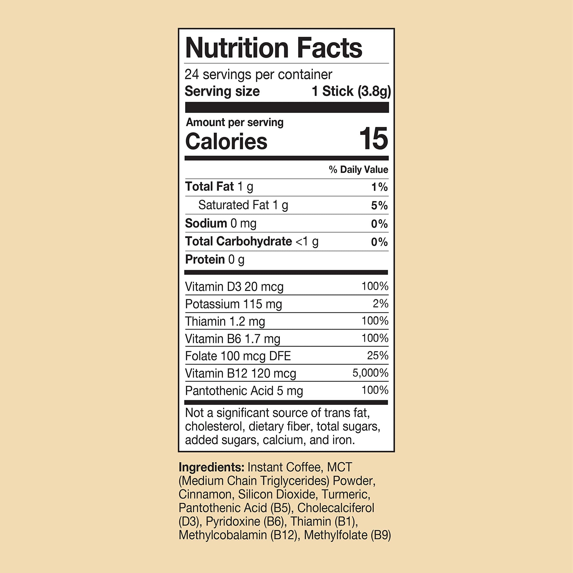 - GENIUS BLEND: A unique blend of MCT Oil, Cinnamon, Turmeric, and essential vitamins B1, B5, B6, B9, B12, and D3 to provide you with energy & focus.