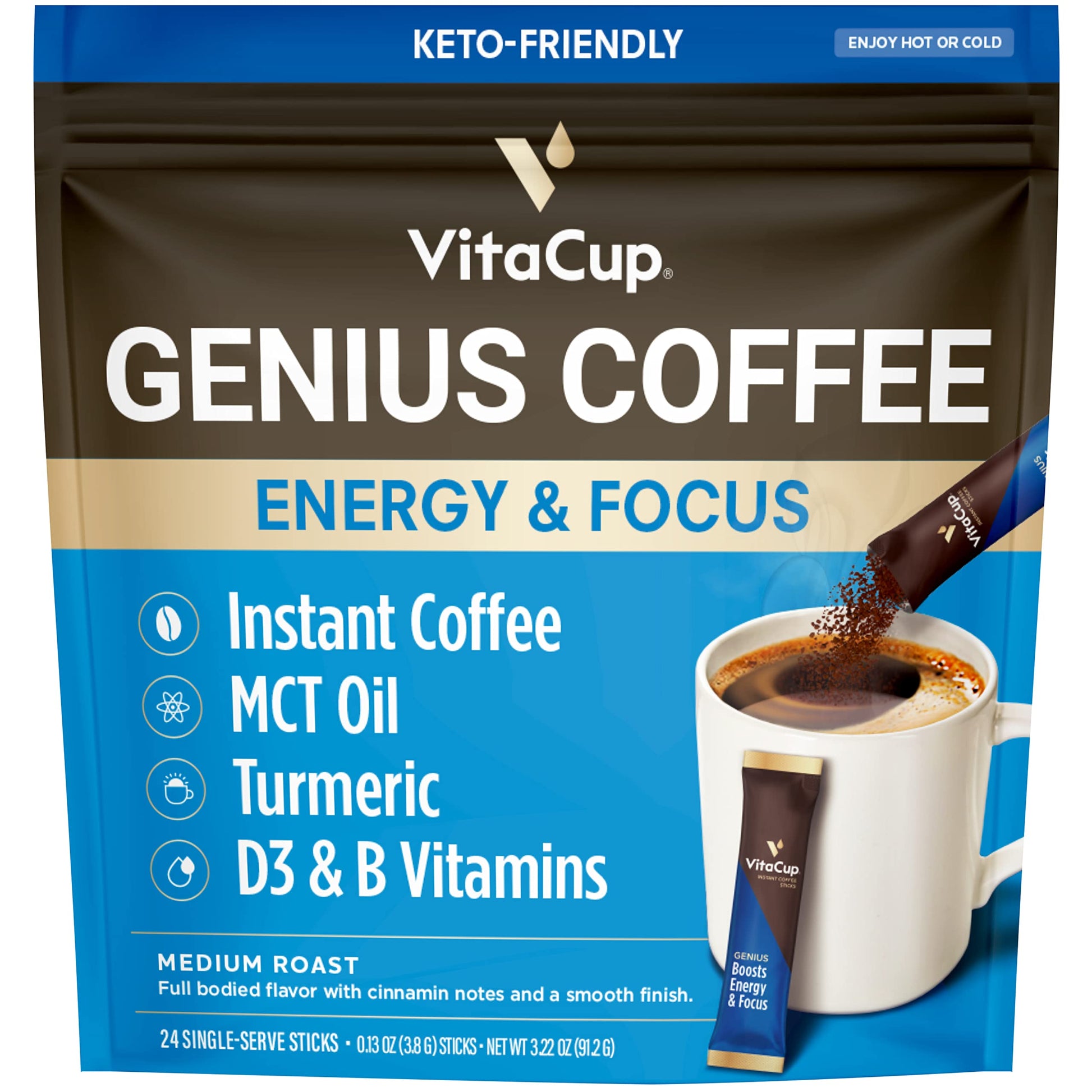 VitaCup Instant Coffee Stick (48) Count Bundle | Genius & Slim Blend | Superfood & Vitamins B1, B5, B6, B9, B12, & D3 Infused | Vegan | Enjoy Hot or ColdBrand: VitaCup