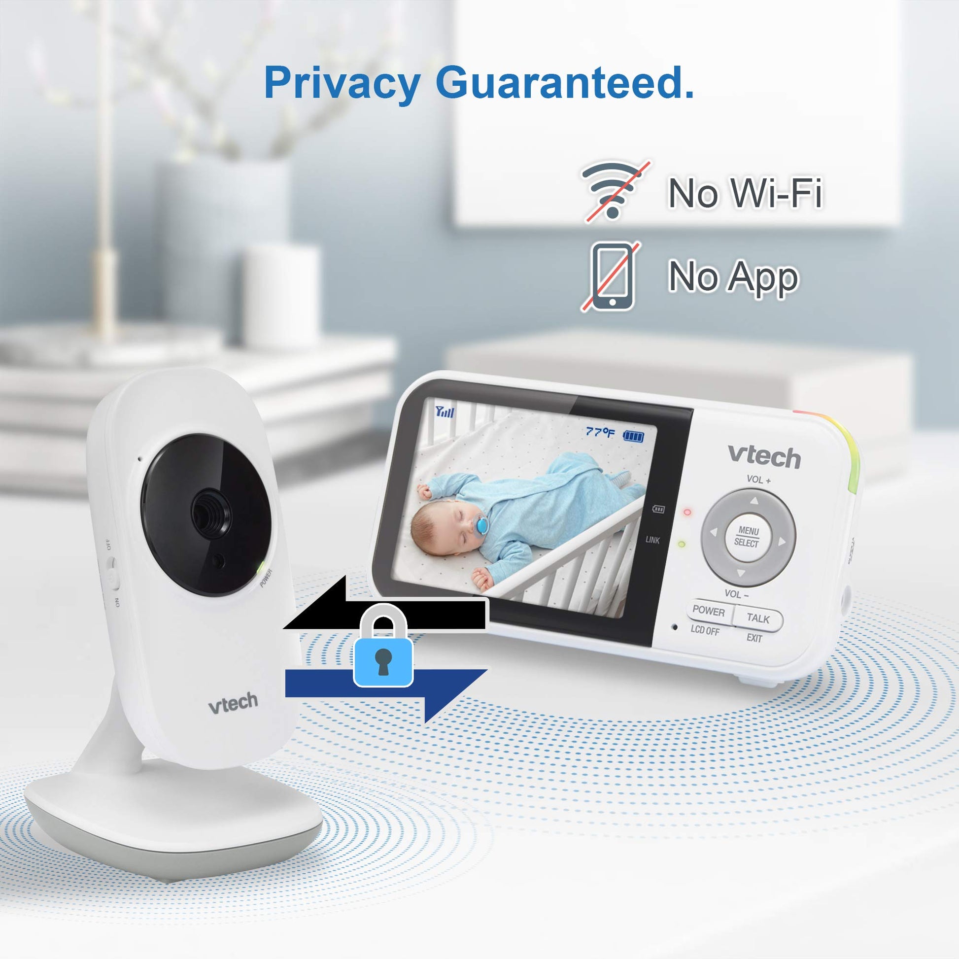 - Privacy Guaranteed. No Wi-Fi or App Pairing - Trusted by US families for more than 3 decades, each VTech monitor is transmitted via secured internal 2.4GHz channel with FHSS technology, so you can rest assured that you're the only one who can hear and see your baby.