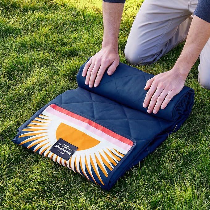 Details: This outdoor blanket is designed to be versatile and ready for various adventures throughout the year – picnics, camping, sports events, or other outdoor activities. The water-resistant shell ensures protection from spills or moisture from the ground, and the removable carrying strap adds to its portability. The blanket is machine washable for easy care and rolls into itself with a Velcro closure making it the perfect travel accessory.