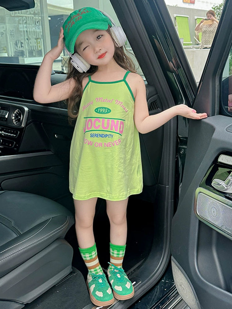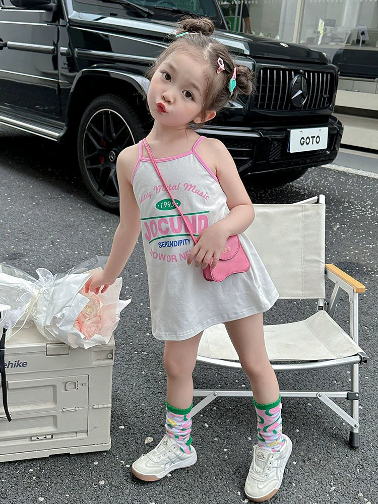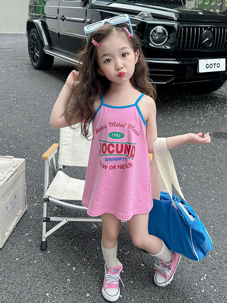 SKU:2048253663557855-Pink Strawberry Bear Slip Dress-140cm