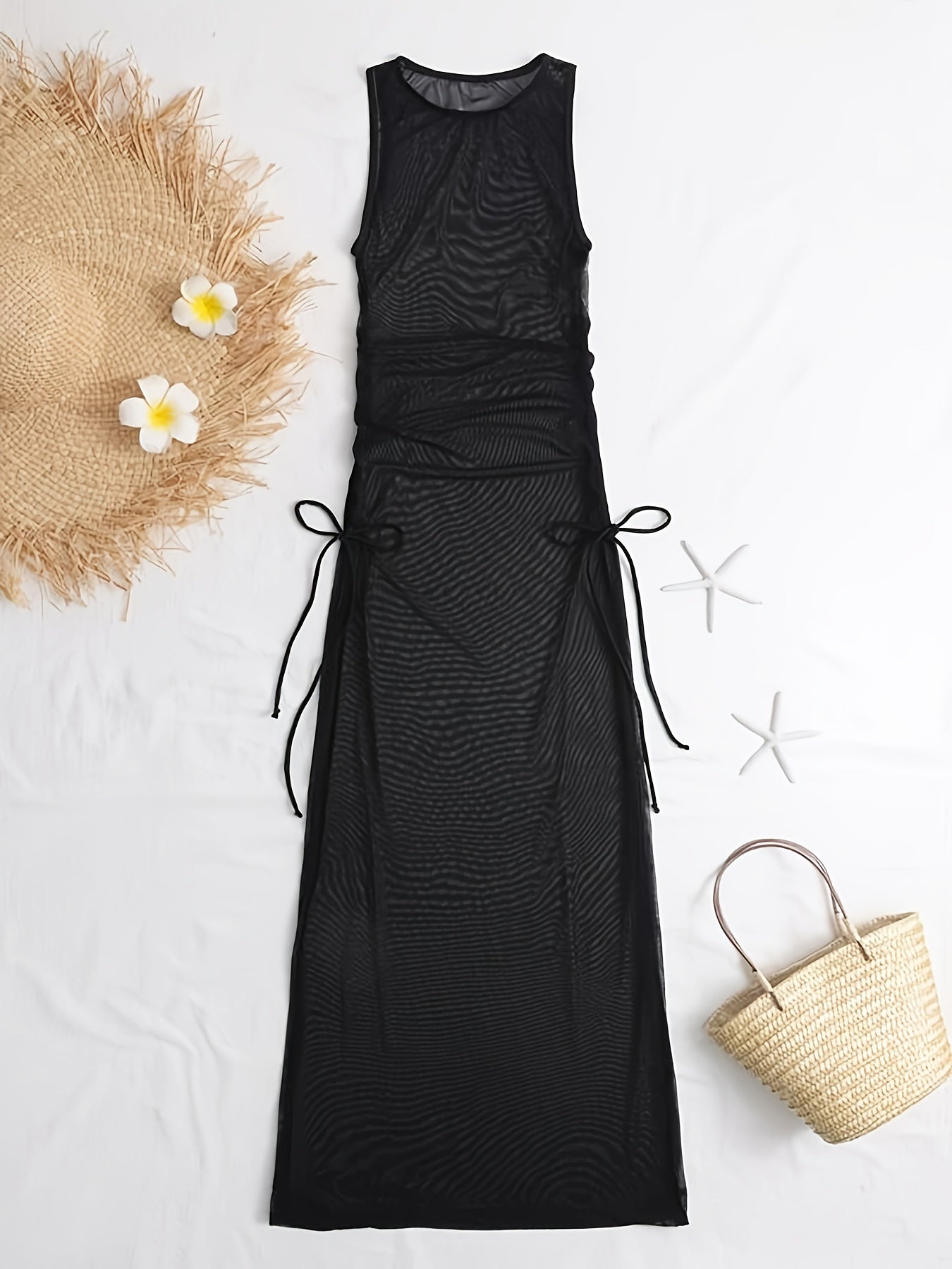 Best Selling Women's Dress, Semi-Sheer Mesh Lightweight Long Maxi, Sleeveless with Side Slit & Back Zipper Round Neck, for Poolside Vacation Casual Outfits, Spring Summer Fall Outwear, Machine Washable (No Bikini Set Included)