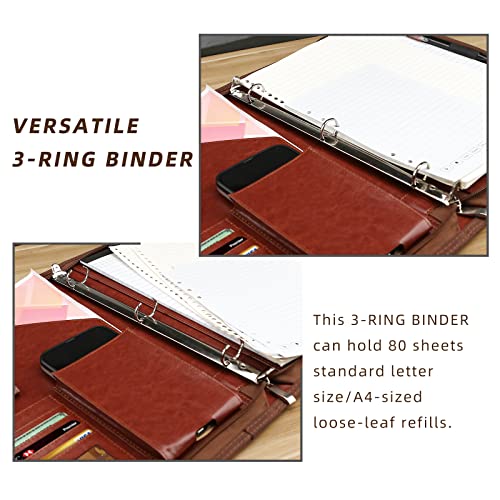 Zippered Portfolio Organizer, WRIYES Leather Padfolio with 3 Ring Binder, Professional Business Binder, Organizer for IPad/Document, Phone & Business Cards, Office Gifts for Men or Women (Brown)Brand: WRIYES